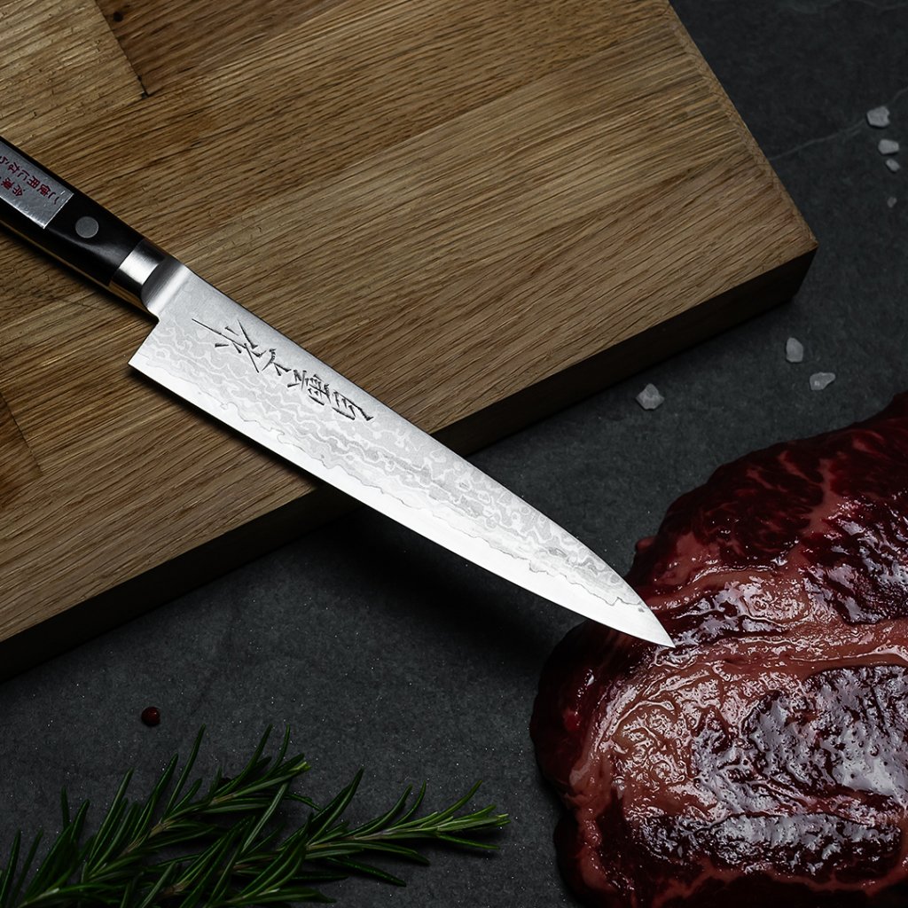 Japonský kuchyňský nůž Petty s damaškovým vzorem VG10 MIKI HAMONO SEISAKUSHO - 150 mm