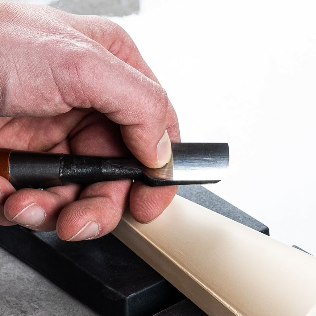 Pro broušení opravdu tupé nebo nerovné čepele použijte kameny s nízkým JIS číslem (japonská klasifikace pro zrnitost). Čím nižší číslo, tím větší hrubost kamene. Kameny s vysokým JIS číslem jsou určeny pro finální a jemné broušení či vyhlazování.