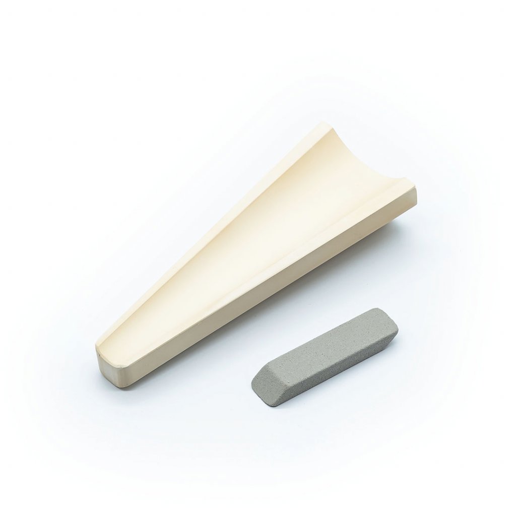 Kuželovité brousky SUEHIRO jsou určeny k ostření nástrojů od dlabacích dlát po řezbářské nože. Jsou vhodné pro zaoblené čepele různých velikostí a povrchů. Lze použít obě strany brousku, což umožňuje ostření vnitřní i vnější plochy ostří. Tyto brousky používejte v následujícím pořadí: hrubý brusný kámen #280, střední brusný kámen #1000, velmi jemný brusný kámen #4000.