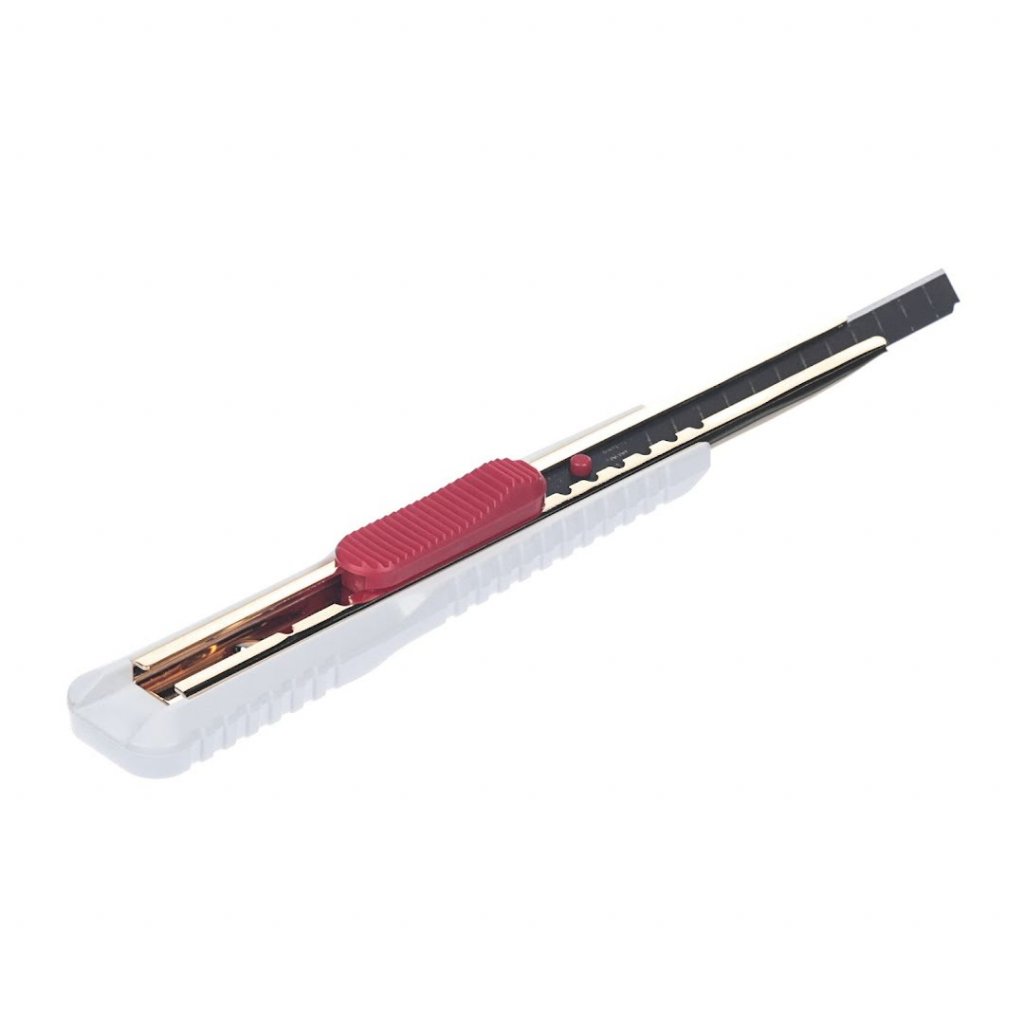 Malý nůž s odlamovací čepelí KAI, model S-002, je navržen pro přesné a snadné řezání v jakémkoliv prostředí. Tento kompaktní nástroj má pohodlnou rukojeť a hladký mechanismus automatického zámku, což zvyšuje efektivitu práce. Je vyroben s tvrdým kovovým vedením pro zvýšenou odolnost a luxusním matným zlaceným povrchem. Nůž obsahuje velmi ostrou čepel a kovové vedení má antikorozní a nepřilnavé vlastnosti, což z něj činí vynikající volbu pro vnitřní stavební projekty.