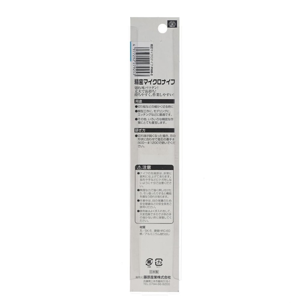 Modelářský nůž SK11, model PNM-2, je navržen pro precizní modelování a práci na diorámách. Vyroben z oceli SK-5, tento nástroj je zakalen na HRC-60, což zajišťuje dlouhotrvající ostrost a odolnost. Skalpel má 1,2 mm plochou čepel a 115 mm kompaktní rukojeť, což jej činí ideálním pro jemné úkoly. Čepel je mimořádně ostrá; manipulujte opatrně a dle potřeby ji ostřete brouskem o zrnitosti 800-1200.