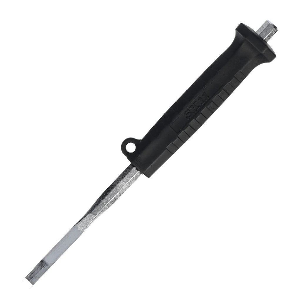 Zahnutý sekáč SK11 je univerzální nástroj pro demolice, páčení, sekání a štípání. Vyrobeno z legované oceli, nabízí vyšší pevnost a odolnost. Nástroj má jedinečné jednostranné ostří pro škrábání a sekání, což jej činí ideálním pro širokou škálu renovačních prací. Integrovaný design rukojeti umožňuje úder na zadní část pro zvýšení síly.
