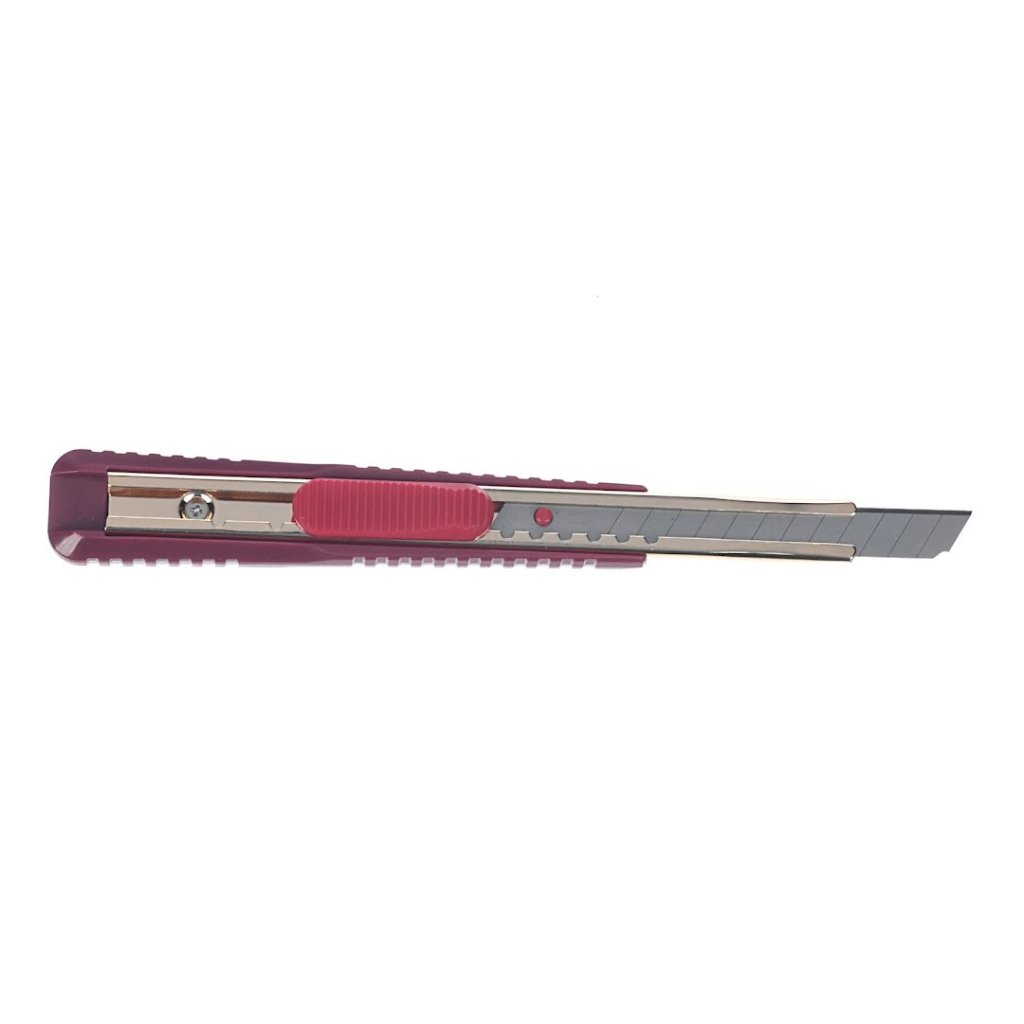 KAI odlamovací nůž je navržen pro přesnost řezů v interiérových stavebních pracích. Pohodlná rukojeť a tvar posuvníku, který dobře padne do ruky, zvyšuje efektivitu práce díky hladkému mechanismu automatického zámku. Odolnost je zajištěna kaleným kovovým vodítkem, doplněným sofistikovanou matnou zlatou povrchovou úpravou. Tento nůž má velmi ostrou čepel a kovové vodítko s korozi rezistentními a nepřilnavými vlastnostmi.