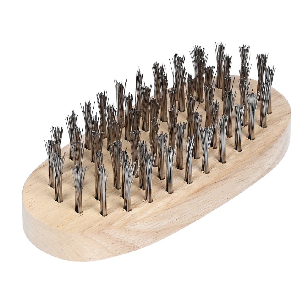 Oválný kartáč SK11, model č.7, je univerzální a robustní kartáč navržený pro účinné odstraňování rzi a odstraňování nátěrů. Má nerezové štětiny, které jsou odolné proti korozi a ideální do vlhkého prostředí. Jeho kompaktní rozměry 60 mm šířka, 130 mm délka a 35 mm výška zaručují snadnou manipulaci při různých čisticích úkolech.