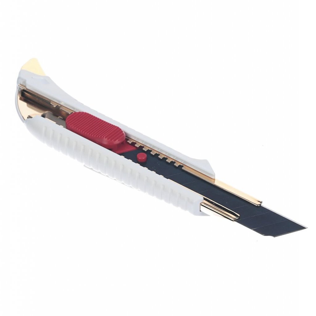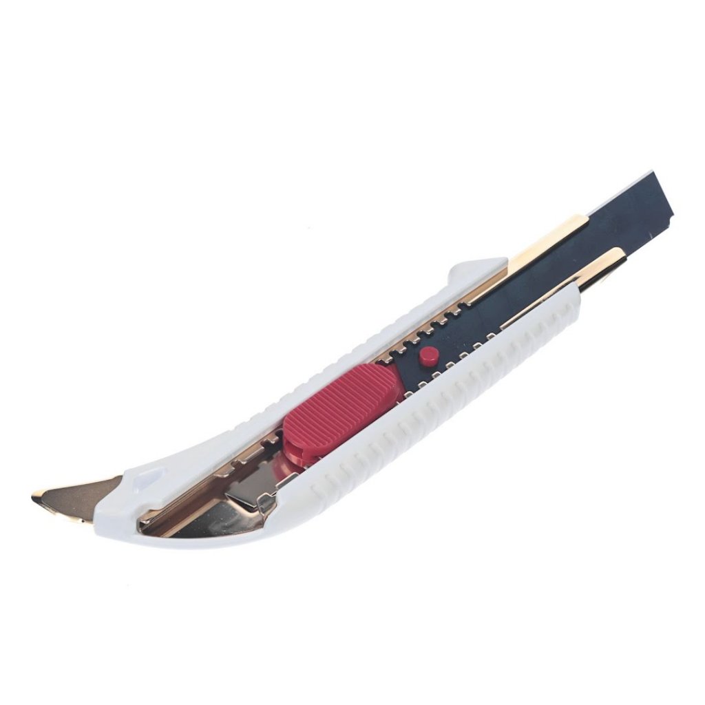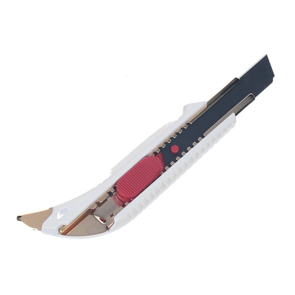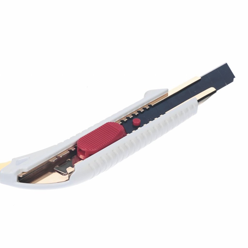KAI odlamovací nůž typu L-002 je navržen pro řezání podlahových materiálů a různé interiérové a elektroinstalační práce. Jeho ergonomická rukojeť z tvrdé gumy zvyšuje efektivitu a bezpečnost práce. Nůž disponuje tepelně upraveným kovovým tělem a kovovým drápem pro zvýšenou odolnost, doplněné sofistikovaným matným zlatým povrchem. Mechanismus vysouvání nože vydrží tlak až 40 kg, což jej činí vhodným jak pro tlačné, tak i tažné řezání.