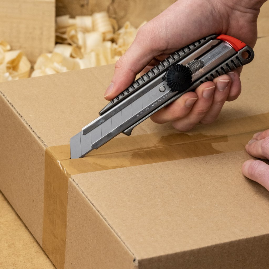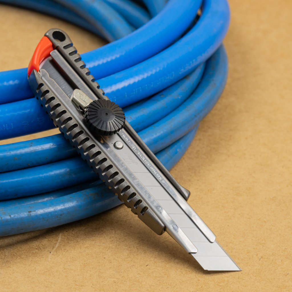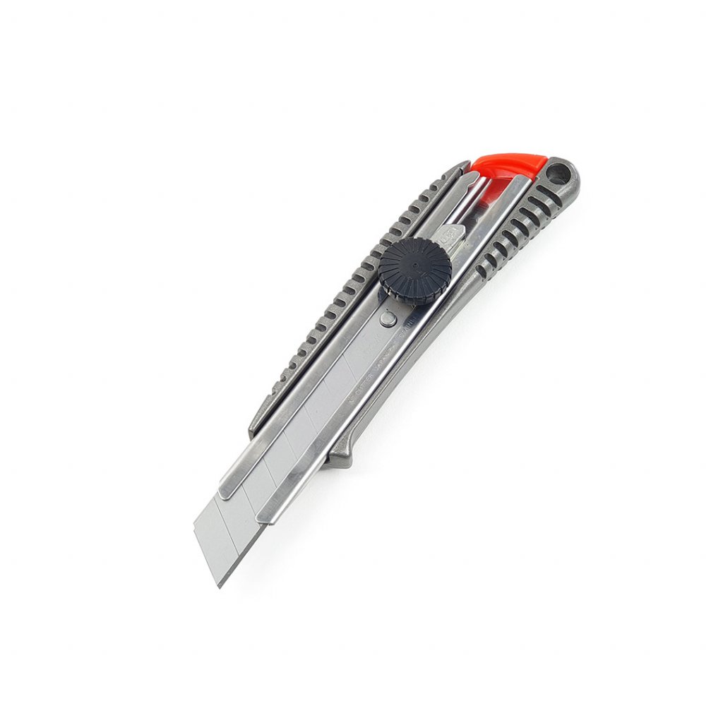 Kvalitní japonský vysouvací odlamovací nůž pro běžné pracovní použití. Vhodné na řezání lepenky, obalových materiálů, látky, vinylu, papíru, gumy a dalších. Tvrzené kovové vedení se zvýšenou odolností. Tělo z tlakově litého hliníku. Extrémně ostrá měnitelná japonská čepel. Vyrobeno v Japonsku.