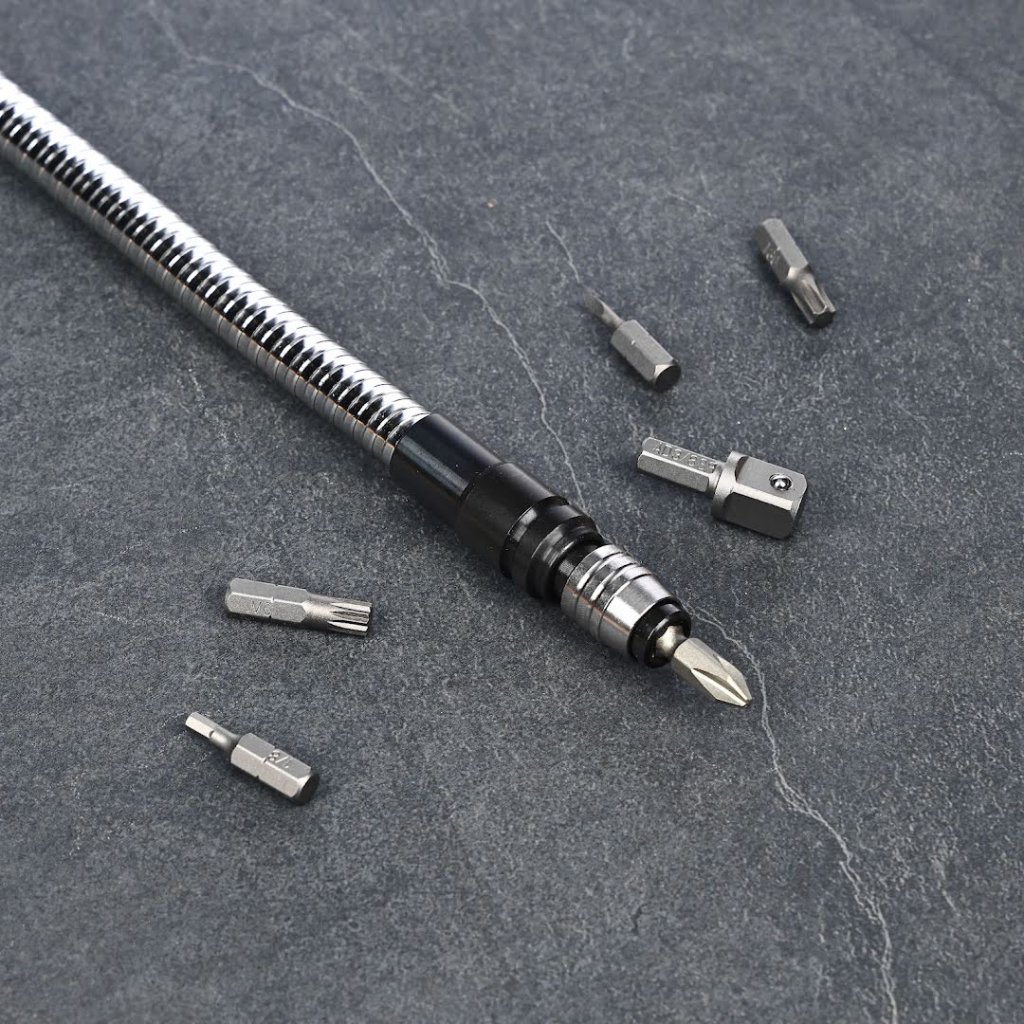 Rychloupínací flexibilní nástavec SK11, model SFB-300, je navržen pro utahování šroubů v úzkých prostorech a u stěn. Disponuje flexibilním osmi-vrstvým tvrdým ocelovým dříkem, který zajišťuje jak odolnost, tak flexibilitu. Mechanismus uzamčení bitů snižuje riziko vypadnutí bitu, což zajišťuje bezpečný provoz. S délkou 300 mm je tento nástroj ideální pro snadné dosažení těsných míst.