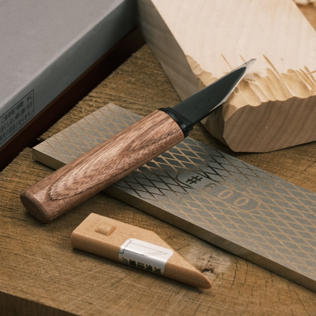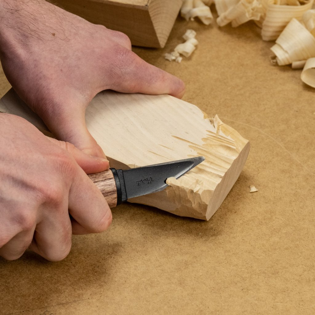 Japonský řezbářský nůž s dřevěnou rukojetí s pouzdrem. Vhodný pro běžné řezbářské práce, modelářství, práci s bambusem, roubování, výrobu hraček a další drobné dřevodělné zpracování. Čepel je velmi ostrá a snadno se brousí. K ostření kogatany doporučujeme japonské vodní kameny.