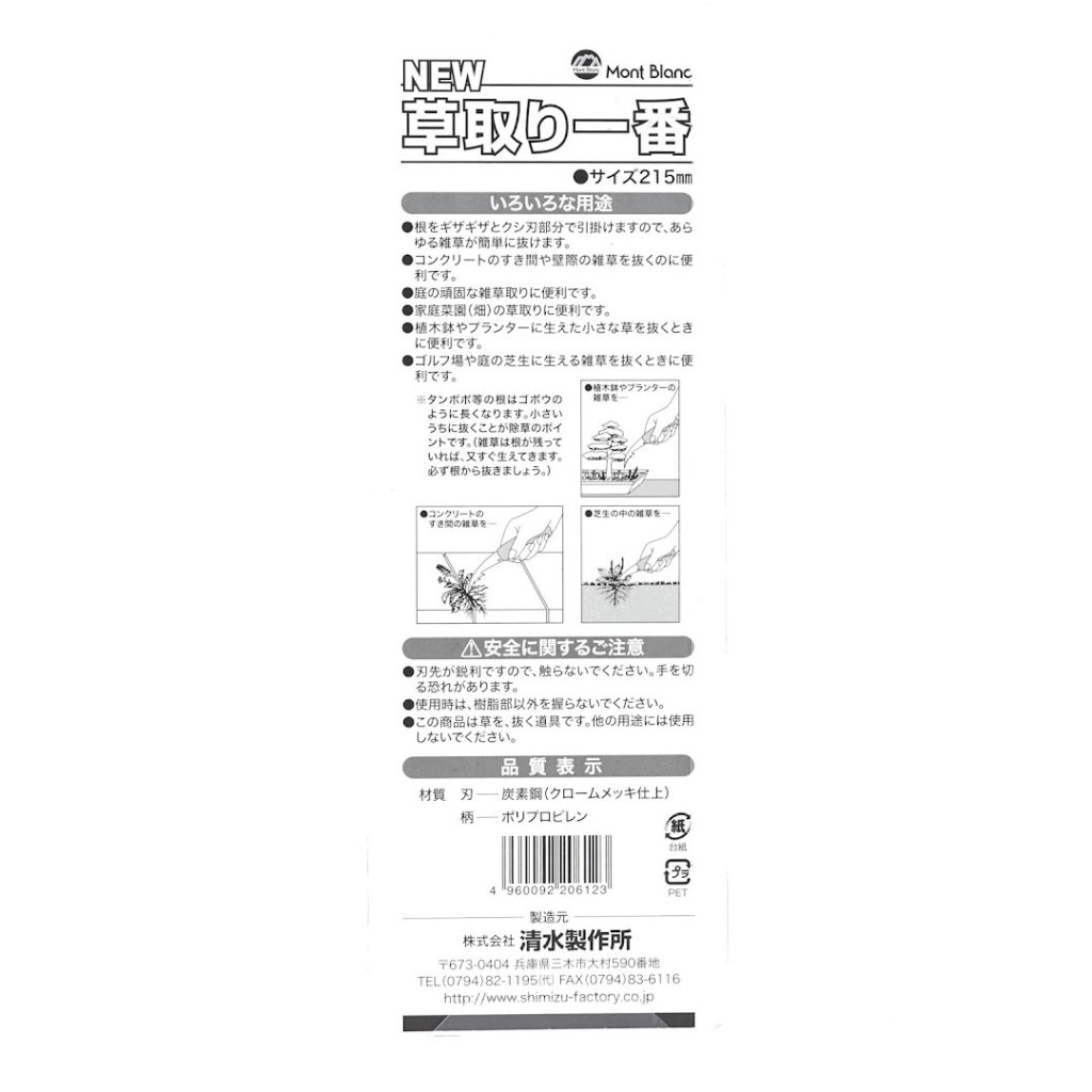 Japonský zahradní nástroj MONT BLANC je nezbytný pro snadné odstranění plevele v různých prostředích. Jeho vroubkovaná hrana efektivně zachytí a odstraní plevele ze zahrad, květináčů a dokonce i mezer v betonu. Čepel je chromovaná a plně kalená pro odolnost, což ji činí ideální pro řešení odolných kořenů na trávnících a v domácích zahradách. S kompaktní délkou 215 mm a hmotností pouhých 52 g je tento nástroj snadno ovladatelný.
