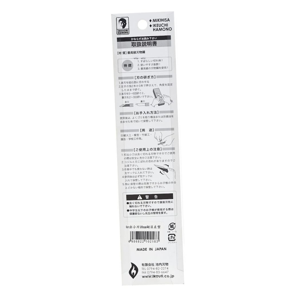 MIKIHISA Kiridashi Kogatana nůž dokonale spojuje tradici a moderní technologii z proslulého dědictví výroby čepelí Banshu Miki. Tento nůž je navržen pro různé použití, jako je řezbářské řemeslo práci z bambusem nebo modelářství. Tyto nože Kogatana lze používat buď holé, nebo s potahem z bambusu či kůže, jak je japonskou tradicí. Můžete si k nim také vyrobit dřevěnou rukojeť. K ostření kogatany doporučujeme japonské vodní kameny. Nůž je určen pro leváky.