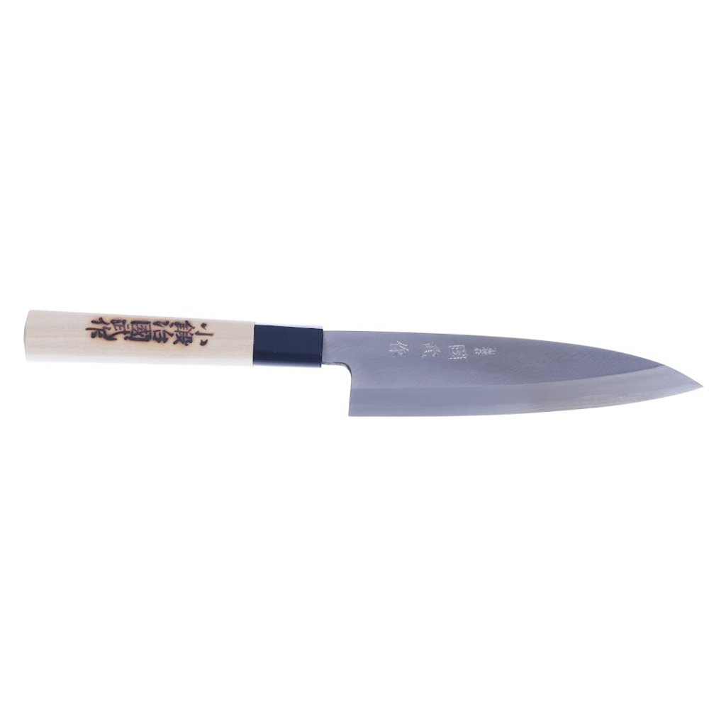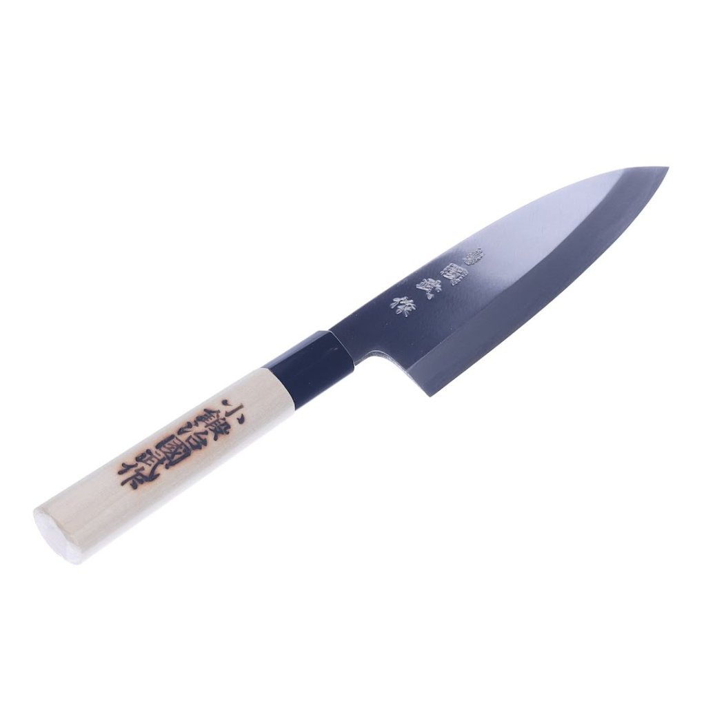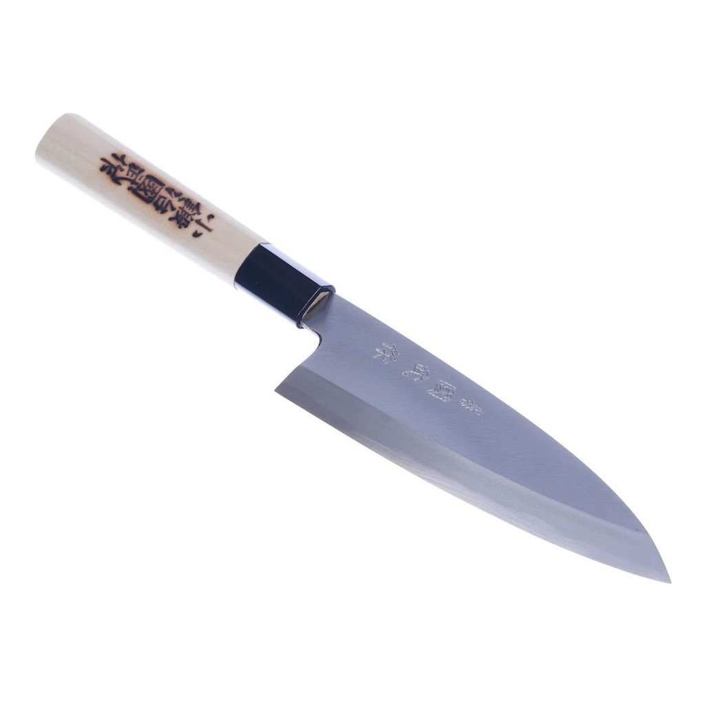 Kuchyňský nůž MIKI HAMONO SEISAKUSHO je univerzální kuchyňský nástroj navržený pro různé úkoly. S délkou čepele 165 mm a jednostranným ostřím je tento nůž ideální pro krájení ryb, masa a zeleniny. Díky speciální oceli čepele tento nůž poskytuje odolnost a ostrost a je určen pro domácí i profesionální použití. Používejte jej s opatrností kvůli vysoké ostrosti čepele.