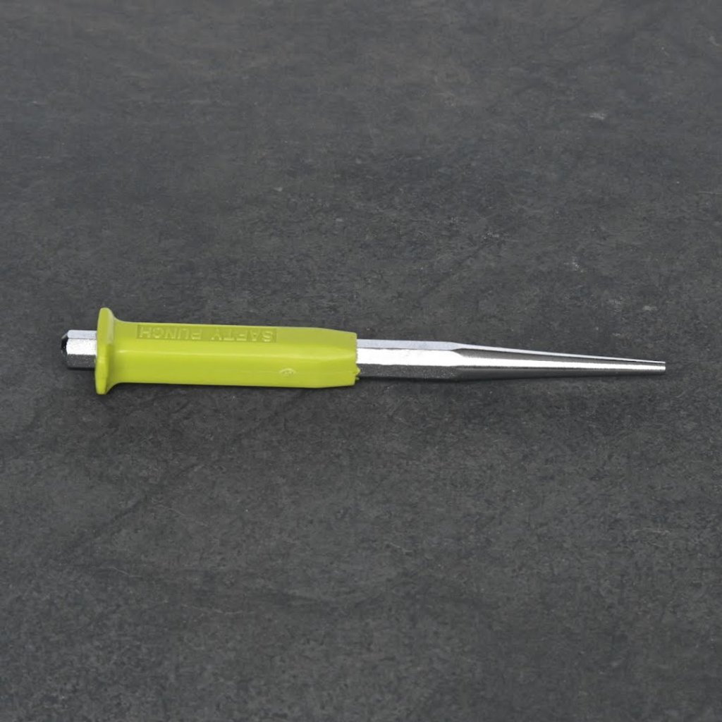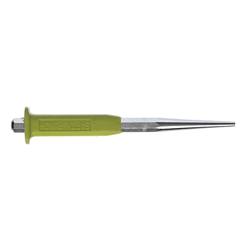 Zatloukač SK11, model NP-150, je univerzální pro úkoly zatloukání a usazování hřebíků. Má ergonomický měkký PVC úchop, který zajišťuje pevné držení a zabraňuje otáčení. Důlčík je 150 mm dlouhý a má pochromovaný povrch, což nabízí zvýšenou odolnost díky vysokofrekvenčnímu tepelnému zpracování. Tento nástroj upřednostňuje bezpečnost rukou během používání a je vhodný jak pro profesionální, tak i pro domácí použití.