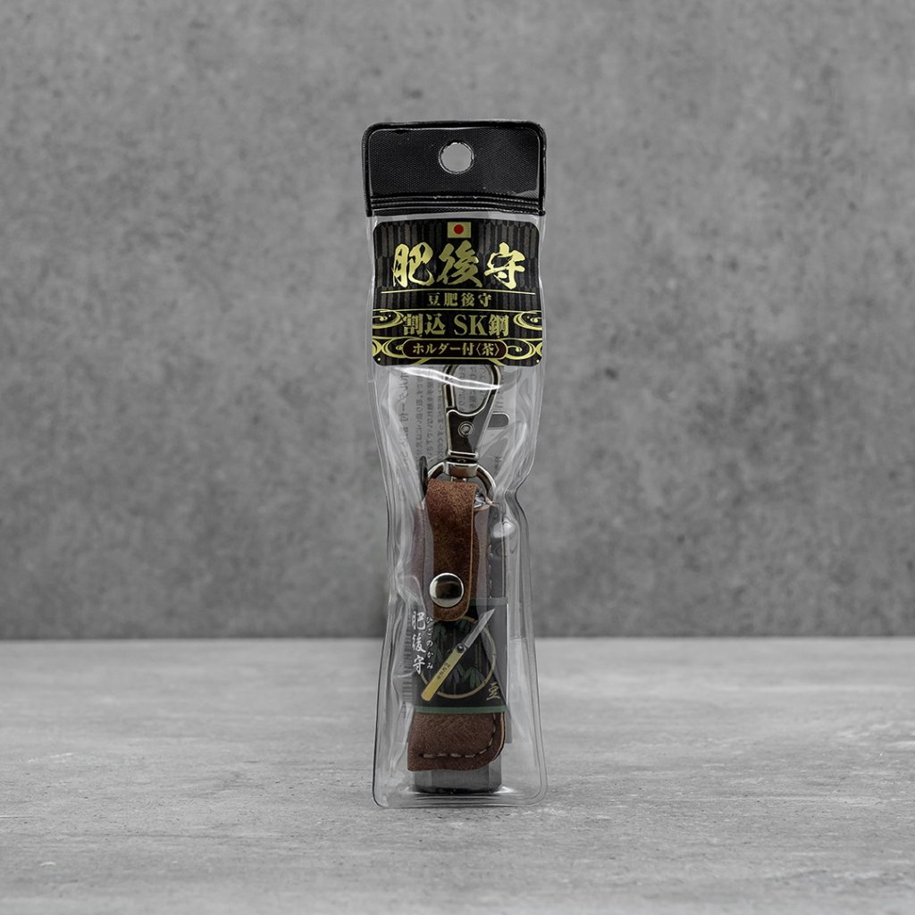 Japonský zavírací nůž NAGAO KANEKOMA Higonokami Warikomi z uhlíkové oceli SK5 - 35 mm - hnědé pouzdro