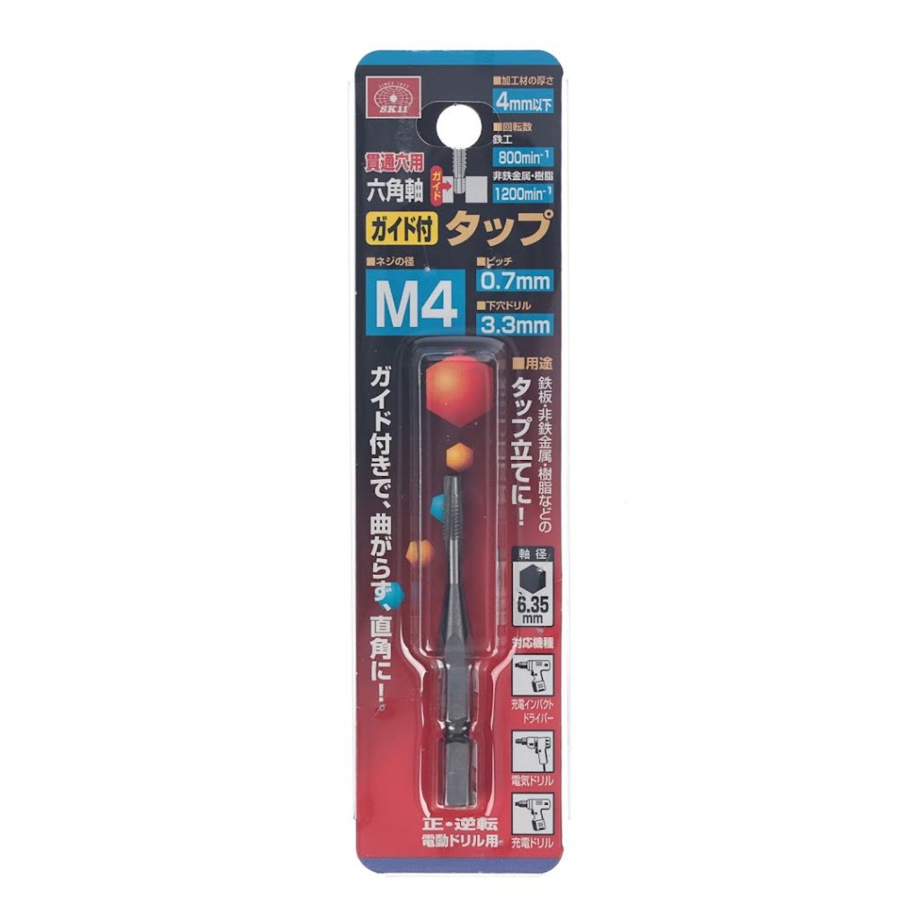 Závitník SK11 je navržen pro přesné vytváření závitů. Šestihranná stopka umožňuje snadné použití s elektrickými nástroji a vodicí pilot zajišťuje rovné závitování, čímž předchází nesprávnému zarovnání. Tento nástroj je ideální pro průchozí otvory a má velikost M4 x 0,7 mm. Průměr závitníku 4 mm se stoupáním mezi drážkami 0,7 mm. Doporučujeme předvrtat otvor o průměru 3,3 mm.