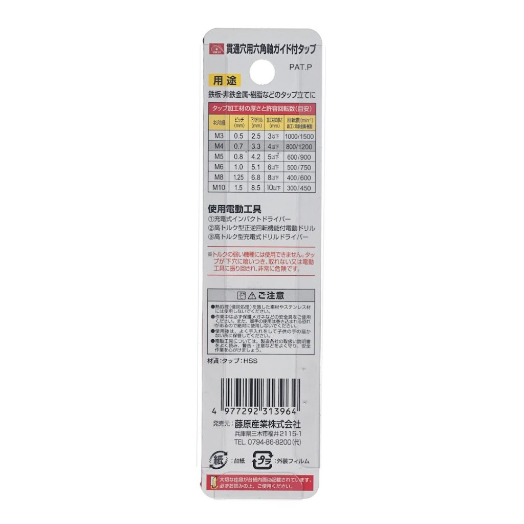Typ závitníku: | S upínacím šestihranem, Pro elektrické nářadí, S vodítkem |