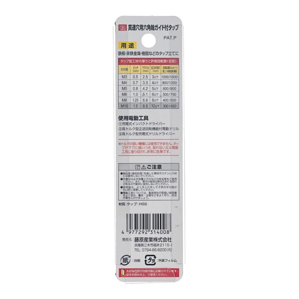Závitník s vodítkem SK11 je navržen pro vrtání a závitování. Jeho šestihranná stopka umožňuje kompatibilitu s elektrickým nářadím a integrované vodítko zajišťuje přesné závitování bez odchylek. Tento nástroj je určen výhradně pro aplikace na průchozí otvory a před použitím vyžaduje předvrtání otvoru o průměru 8,5 mm.