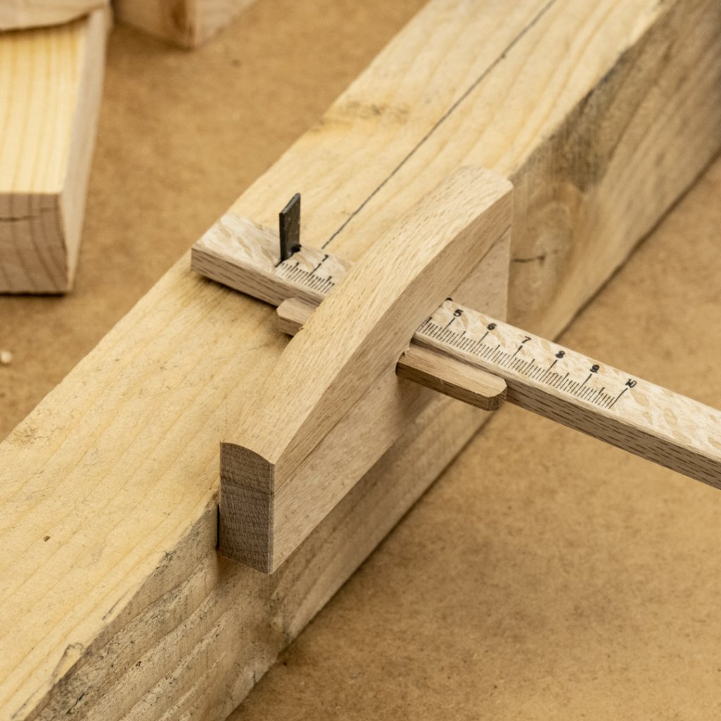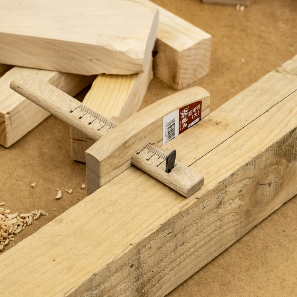 Nastavitelný japonský rýhovací a značkovací nástroj s čepelí. Rozměry 125 x 180 x 50 mm. Díky měřící stupnici lze přesně, rychle a efektivně provádět pomocí čepele značení na dřevěných, plastových nebo sádrokartonových projektech.