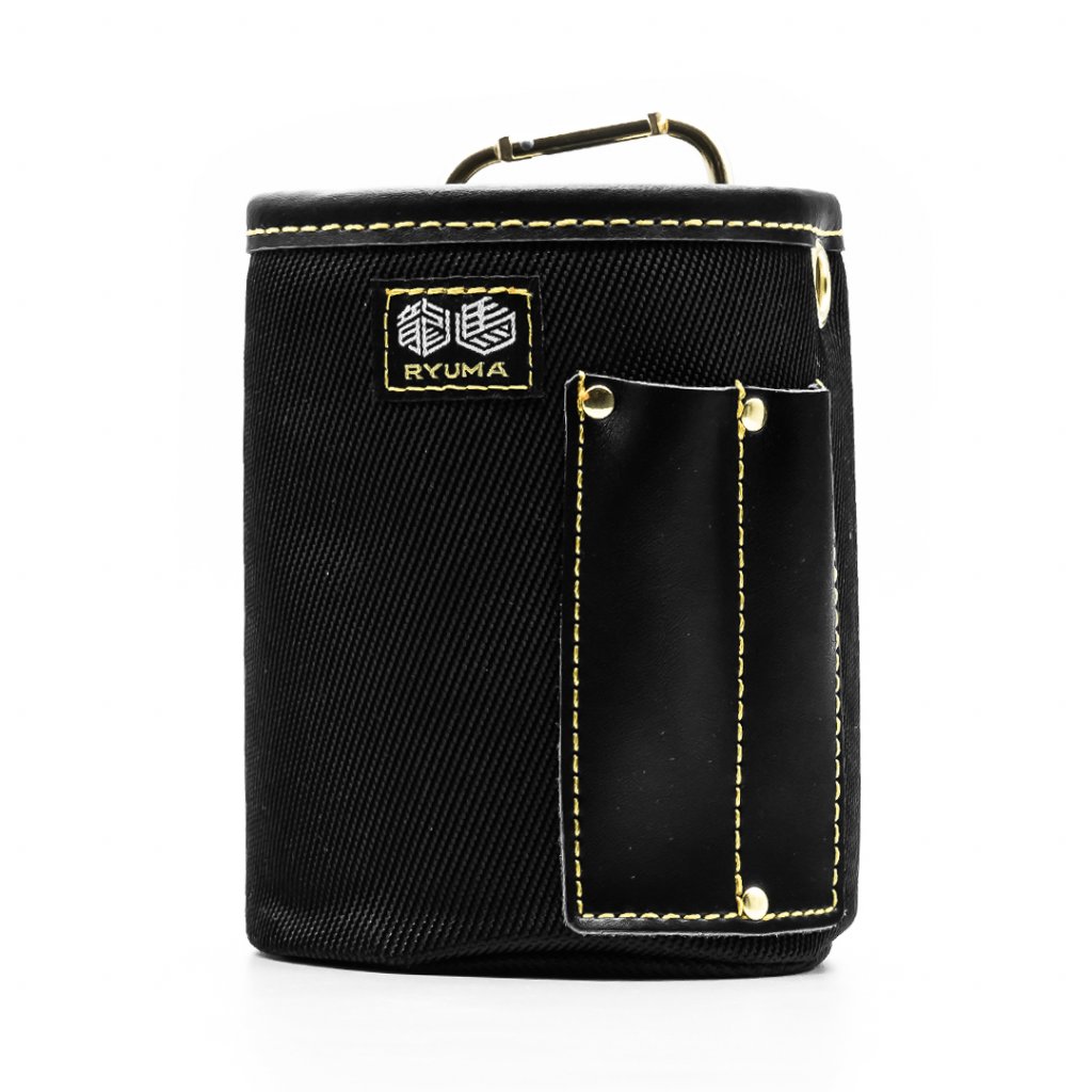 Robustní kapsa pro řemeslníky od značky RYUMA, kterou snadno připevníte na opasek. Boční kapsy na tužky, karabina a poutko.