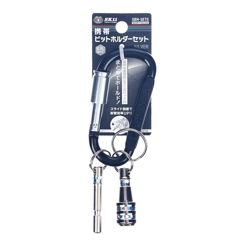 Přenosná sada SK11, je všestranné řešení pro zajištění nástrojů a klíčů. Obsahuje karabinu s pojistkou proti rozšroubování, která zabraňuje náhodnému pádu, a umožňuje flexibilní připevnění. Design s nasouváním držáků na bity zajišťuje snadné vyměňování a 2-kuličkový zámek poskytuje vyšší bezpečnost. Tato sada podporuje upínací stopku o průměru 6,35 mm a obsahuje adaptér pro kulaté hřídele.