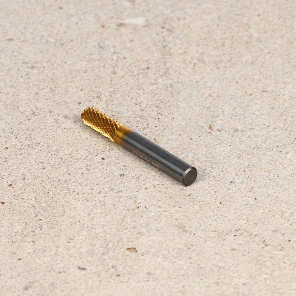 Tato technická fréza SK11 je vysoce výkonný, válcovitý rotační nástrojový doplněk navržený pro přesné obrábění kovů. Vyznačuje se odolným titanovým povlakem, který zvyšuje životnost a řeznou účinnost karbidové frézy. S rozměrem 6 x 16 mm a stopkou o průměru 6 mm je kompatibilní jak s pneumatickými, tak s elektrickými bruskami a křížové ozubení zajišťuje minimální chvění a lámání třísek. Max. otáčky 30 000 RPM.