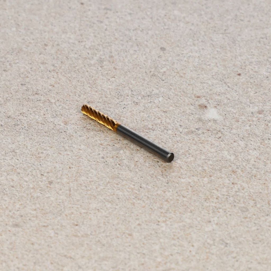 Tato válcová fréza SK11 je vysoce výkonný, válcovitý rotační nástrojový doplněk navržený pro přesné obrábění kovů. Vyznačuje se odolným titanovým povlakem, který zvyšuje životnost a řeznou účinnost karbidové frézy. S rozměrem 3 x 14 mm a stopkou o průměru 3 mm je kompatibilní jak s pneumatickými, tak s elektrickými bruskami a křížové ozubení zajišťuje minimální chvění a lámání třísek. Max. otáčky 30 000 RPM.