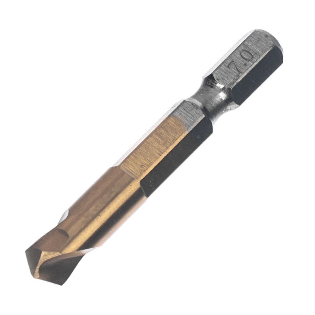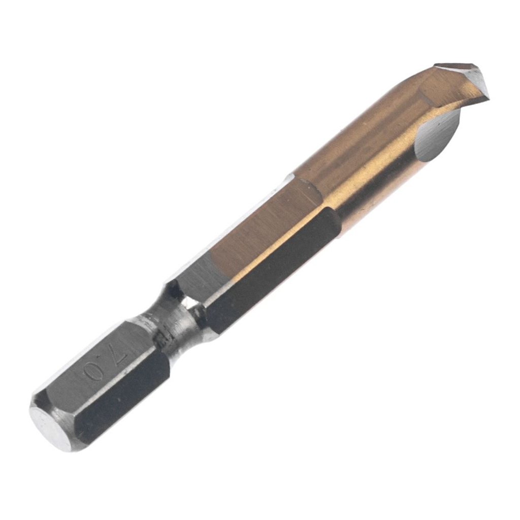 Titanem potažený vrták SK11 s průměrem 7 mm z rychlořezné oceli HSS pro vylepšenou tepelnou odolnost a dlouhou životnost. Tento vrták je navržen s hexagonální stopkou pro snadné připevnění k rázovým utahovákům a vrtačkám. Ideální pro vrtání do železa, dřeva, pryskyřice a lehkých kovů, jeho křížově tenčená čepel zajišťuje vynikající výkon při skusu. Kompaktní délka 50 mm usnadňuje manipulaci a kontrolu.