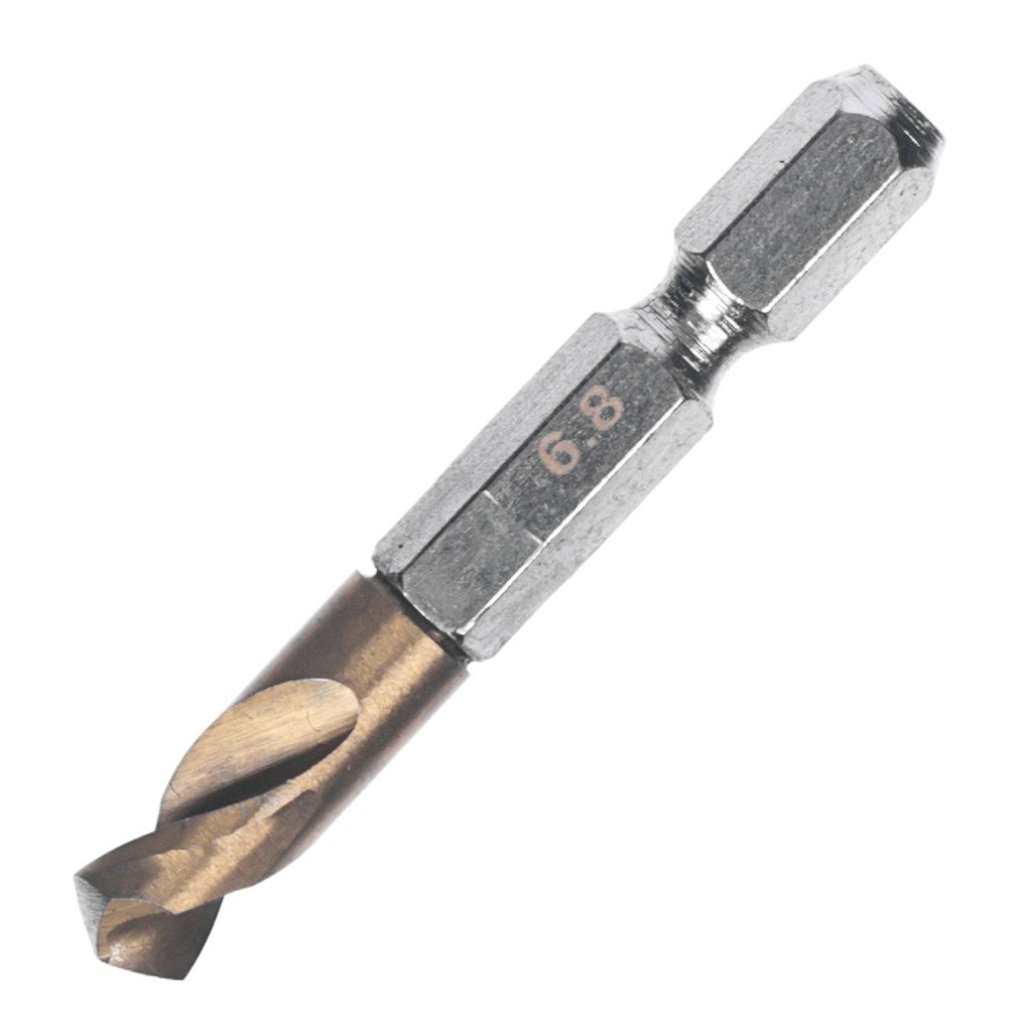 Titanem potažený vrták SK11 s průměrem 6,8 mm z rychlořezné oceli HSS pro vylepšenou tepelnou odolnost a dlouhou životnost. Tento vrták je navržen s hexagonální stopkou pro snadné připevnění k rázovým utahovákům a vrtačkám. Ideální pro vrtání do železa, dřeva, pryskyřice a lehkých kovů, jeho křížově tenčená čepel zajišťuje vynikající výkon při skusu. Kompaktní délka 50 mm usnadňuje manipulaci a kontrolu.