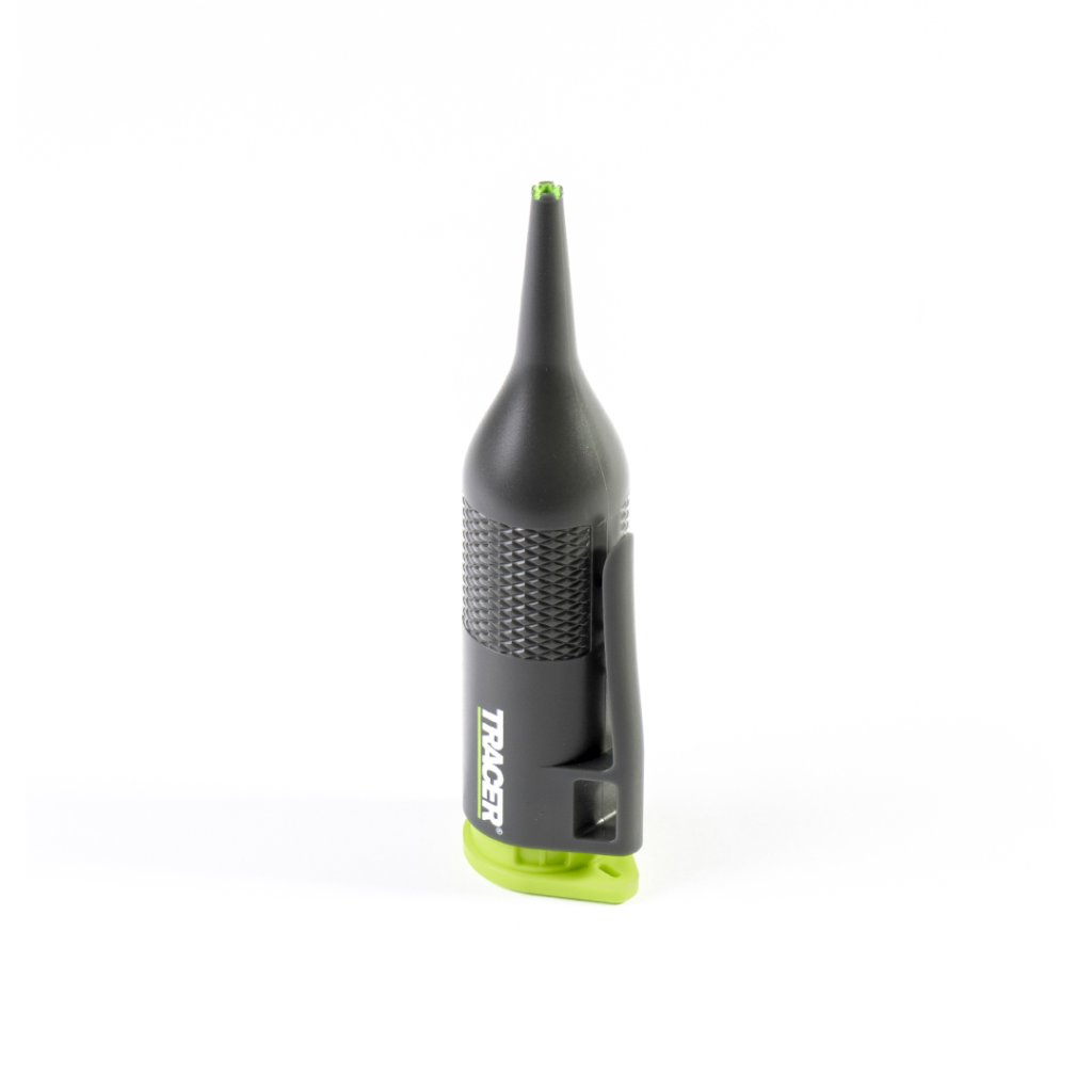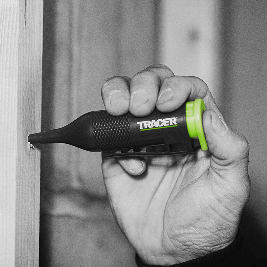 Všestranný značkovací nástroj TRACER® Trueshot Chalk Marking Kit je ideální pro značení otvorů hlubokých až 100 mm a jiných těžko dostupných místech. Díky vyměnitelné nádobce, funkci uzamčení a zúženému odolnému tělu z termoplastu ABS poskytuje čisté a přesné zářivě zelené křídové značky i v těsných prostorech.