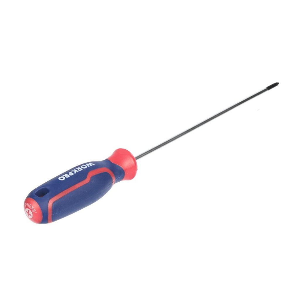 Šroubovák od značky WORKPRO upevňuje a odstraňuje křížové šrouby kdykoliv potřebujete. Tento nástroj disponuje pevným gumovým úchopem a díky tomu budete moci pracovat s přesností. Šroubovák má délku dříku 152 mm a velikost hrotu pro šrouby PH0.