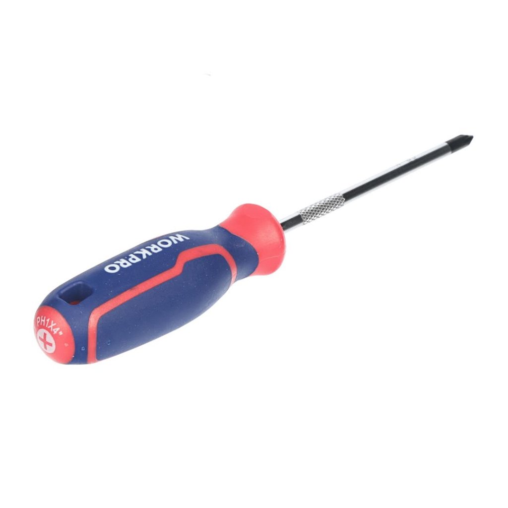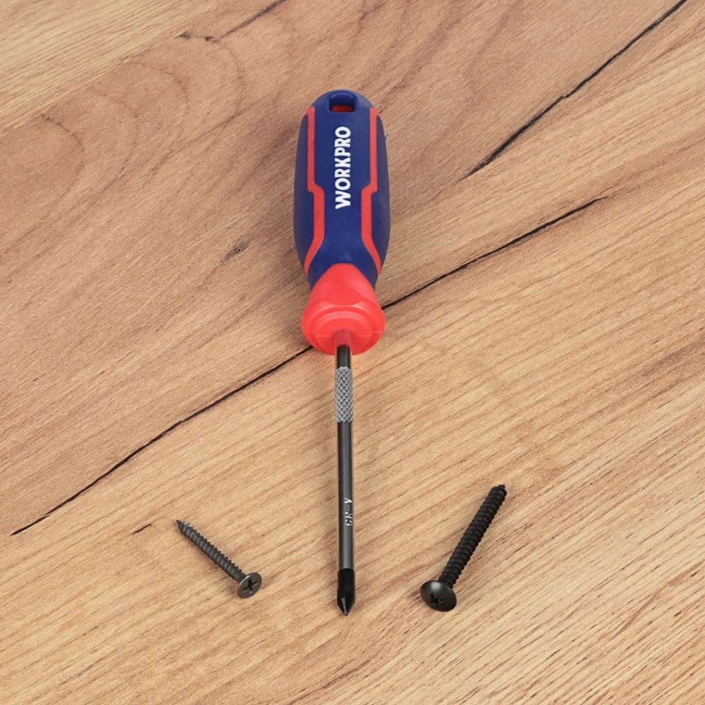 Křížový šroubovák od WORKPRO upevňuje a odstraňuje šrouby kdykoliv je potřeba. Gumová rukojeť vám zajistí nejen pohodlí, ale také pevný úchop, takže můžete hravě přitlačit a nebát se sklouznutí. Tento nástroj má délku dříku 101 mm a můžete s ním šroubovat šrouby s velikostí PH1.