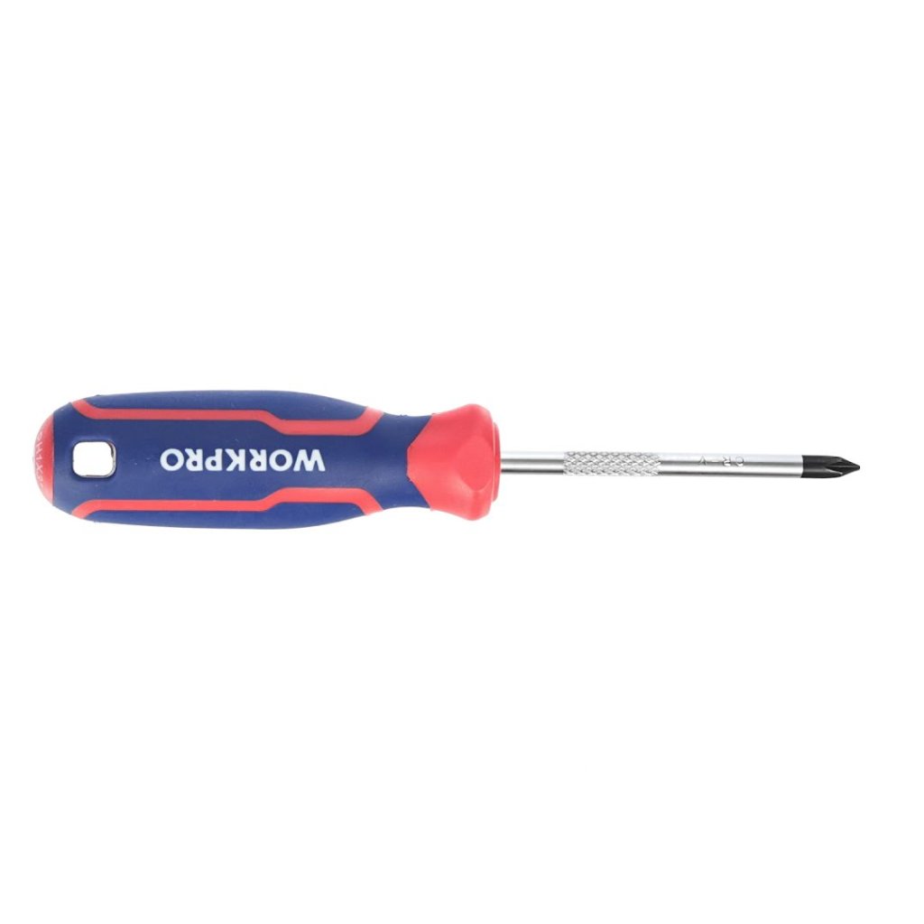 Křížový šroubovák od WORKPRO upevňuje nebo odstraňuje šrouby. Tento nástroj disponuje pevným gumovým úchopem a díky tomu budete moci pracovat s maximální přesností. Šroubovák má délku dříku 76 mm a velikost pro šrouby PH1.