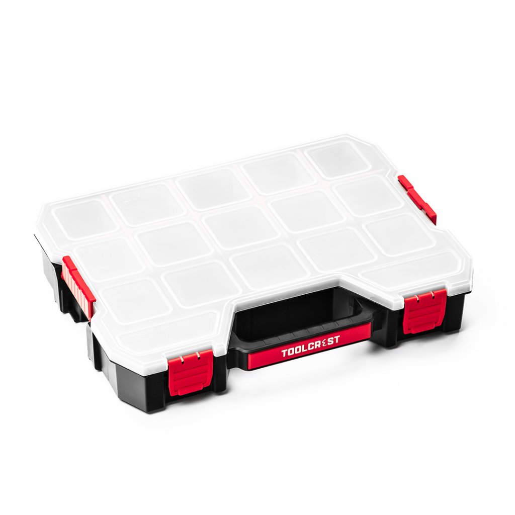 Pořádek v dílně nebo na pracovišti je základ. Nikdo nechce neustále hledat šroubky, matičky a podložky. TOOLCREST přichází s řešením v podobě kufříku s modulárními přihrádkami, takže si snadno upravíte prostor pro dlouhé šrouby, hmoždinky i malé hřebíčky. Díky promyšleným bočním klipsnám pevně spojíte několik kufříků na sebe.