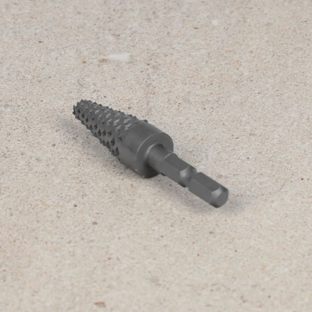 Kuželová fréza SK11, model No.R-HEX, je ideální pro vyhlazování a tvarování dřeva. Tento nástroj disponuje 6,35 mm šestihrannou stopkou, což umožňuje rychlé a snadné připojení k rázovým utahovákům. Navržen s rozměrem 14x35 mm a vhodný pro rotace vrtačky pod 3000 ot./min., zajišťuje efektivní výkon. Ideální pro práce se dřevem a další projekty.