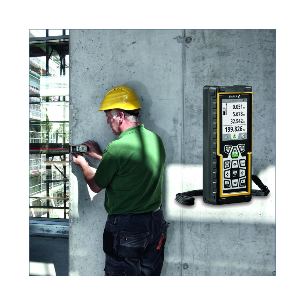 Stabila LD 520 je špičkový model laserového dálkoměru. Jedná se o laserový měřič, který používá většina odborníků, je dostatečně robustní a odolný aby se s ním dobře pracovalo na stavbě. Tento laserový měřič vzdálenosti má dosah až 200 m. Laserový dálkoměr Stabila LD 520 má displej s vysokým rozlišením o velikosti 2,4 palce, který ve spojení s kamerou se zoomem (zvětšení 4x ) umožní čtení údajů i v této vzdálenosti. Možnost použít stativ. Funkce Bluetooth® Smart (4.0) umožňuje snadnou výměnu dat, např. s iPhone nebo iPad. V kombinaci s přístrojem Stabila "Measures" lze výsledky přenést přímo do fotografií a skic.