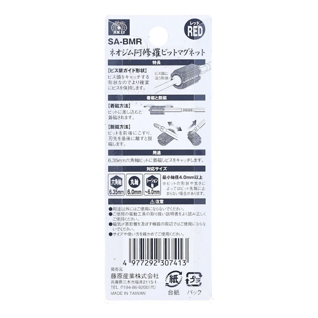 Magnetizér SK11, model SA-BMG, je univerzální nástroj navržený pro magnetizaci a demagnetizaci bitů. Podporuje 6,35 mm bity s hexagonální stopkou a je kompatibilní s hexagonálními, kulatými a torzními stopkami od 4 mm do 6 mm. Kompaktní design (24mm x 14mm x 13mm) zajišťuje přesné uchycení a nástroj váží pouze 7g.