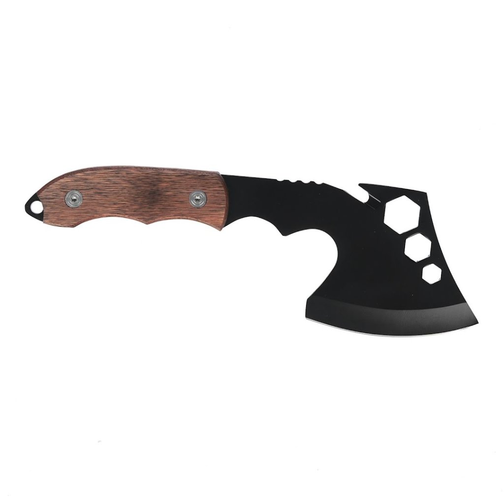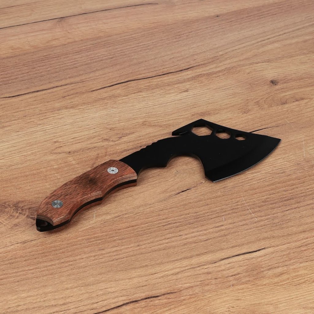 Kempingová sekera SENKICHI je nezbytná pro milovníky outdooru a domácí kutily. Navržena pro ořezávání větví a štípání palivového dříví, tato sekera disponuje tenkou čepelí ideální pro bushcraft aktivity. Její kompaktní velikost, vážící přibližně 285 g, zajišťuje snadnou manipulaci, zatímco přiložené pouzdro zajišťuje pohodlné a bezpečné uložení.