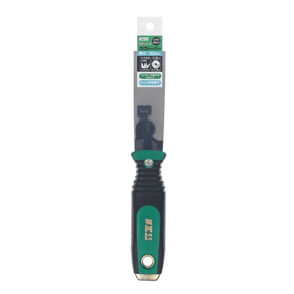 Špachtle SK11, model SGS-1, je nepostradatelným nástrojem pro odstraňování barvy a rzi. Její nerezová čepel se snadno čistí a je odolná proti korozi. Měkká rukojeť je navržena tak, aby pohodlně padla do ruky, což umožňuje dlouhodobé používání bez únavy. 32 mm široká čepel zajišťuje přesnou kontrolu při jakékoliv práci.