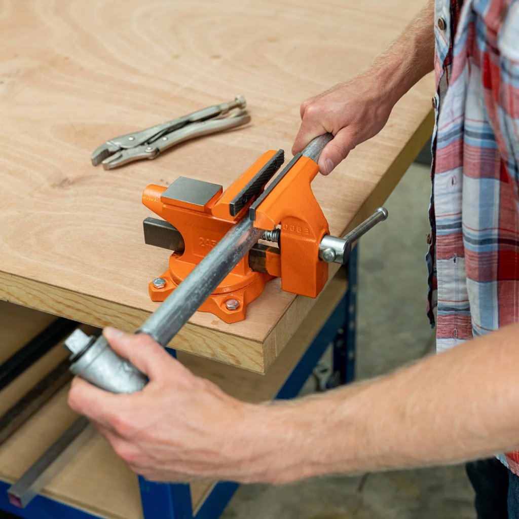 Tento malý přenositelný svěrák je určen k připevnění na dřevěnou pracovní desku stolů, hoblic či ponků. Je relativně lehký a snadno přenositelný. Broušené čelisti. Upínací šroub je chromovaný.