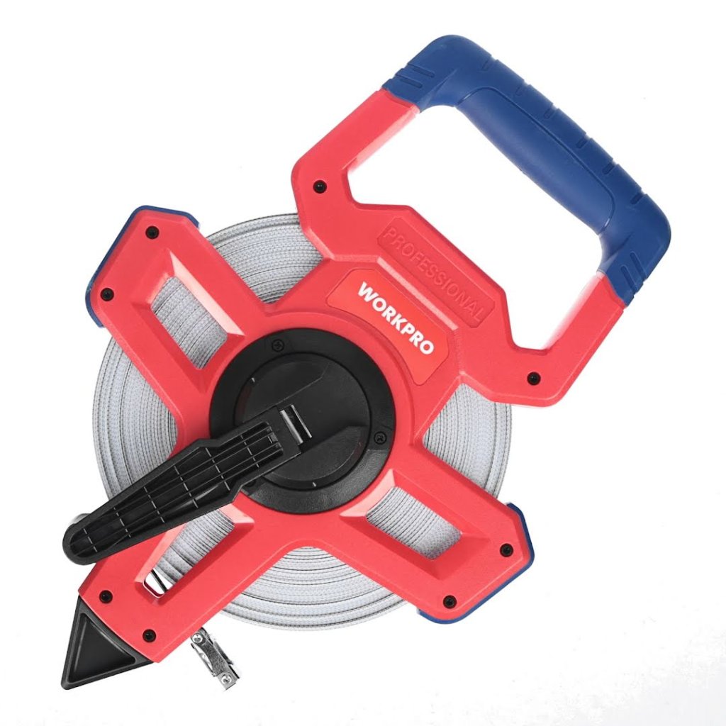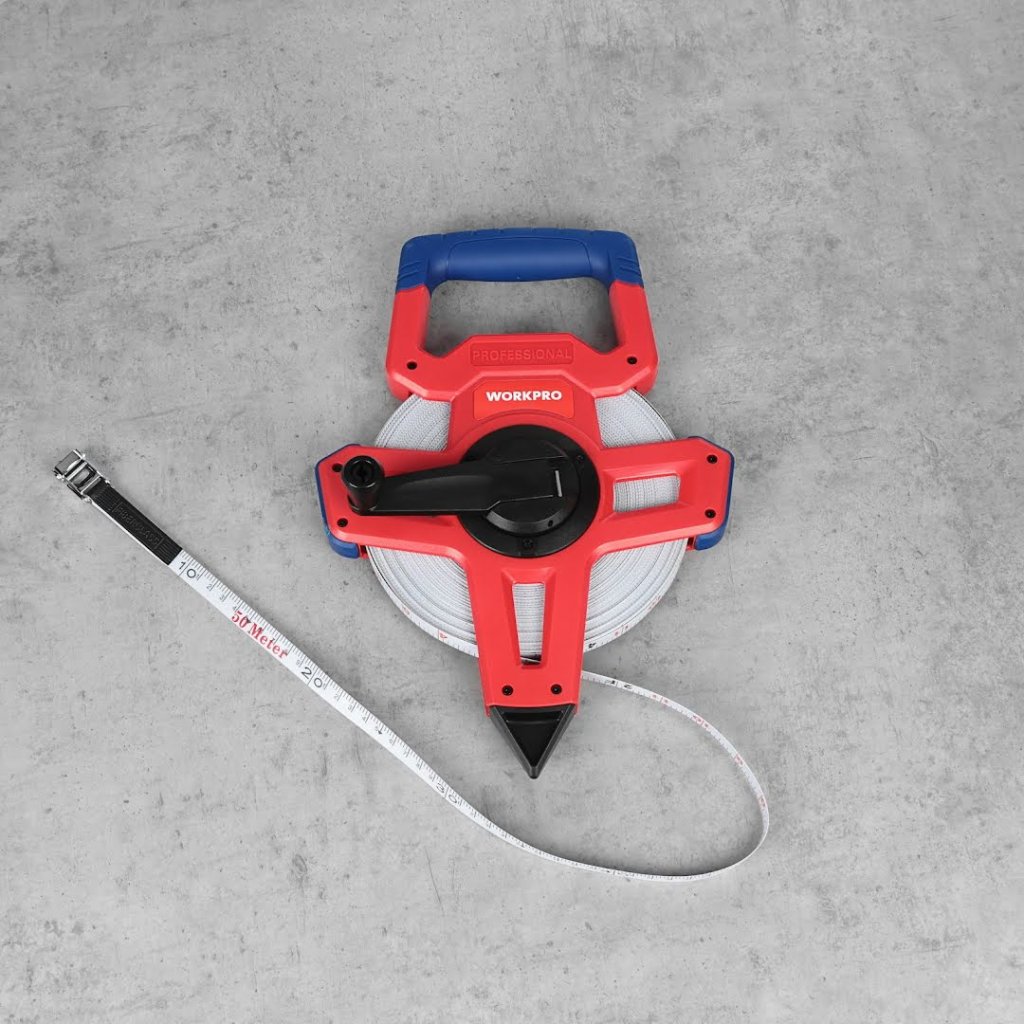 Pásmo WORKPRO pro snadné měření terénu. S návinem 50 metrů dokážete snadno měřit i delší vzdálenosti. Snadné navíjení cívky pomocí kličky na straně pásma.