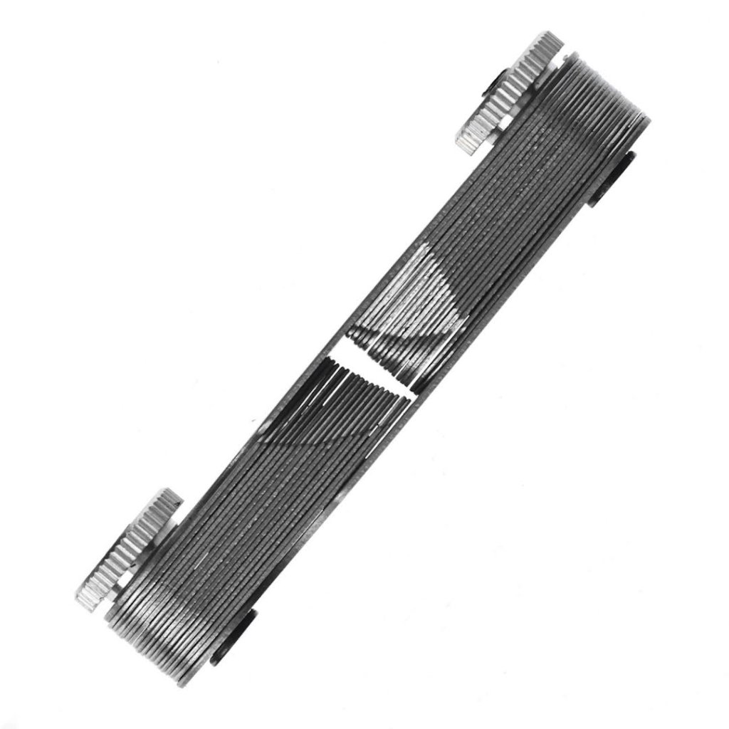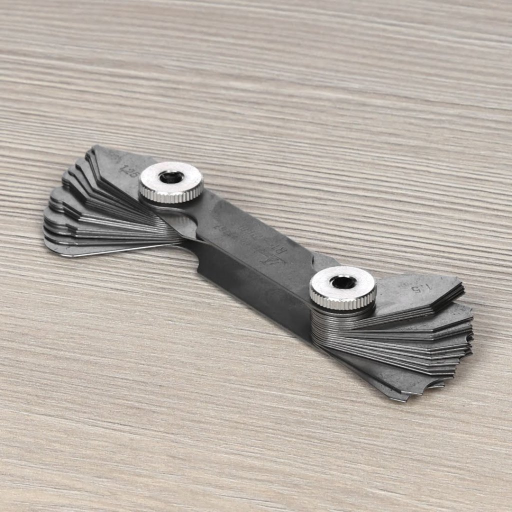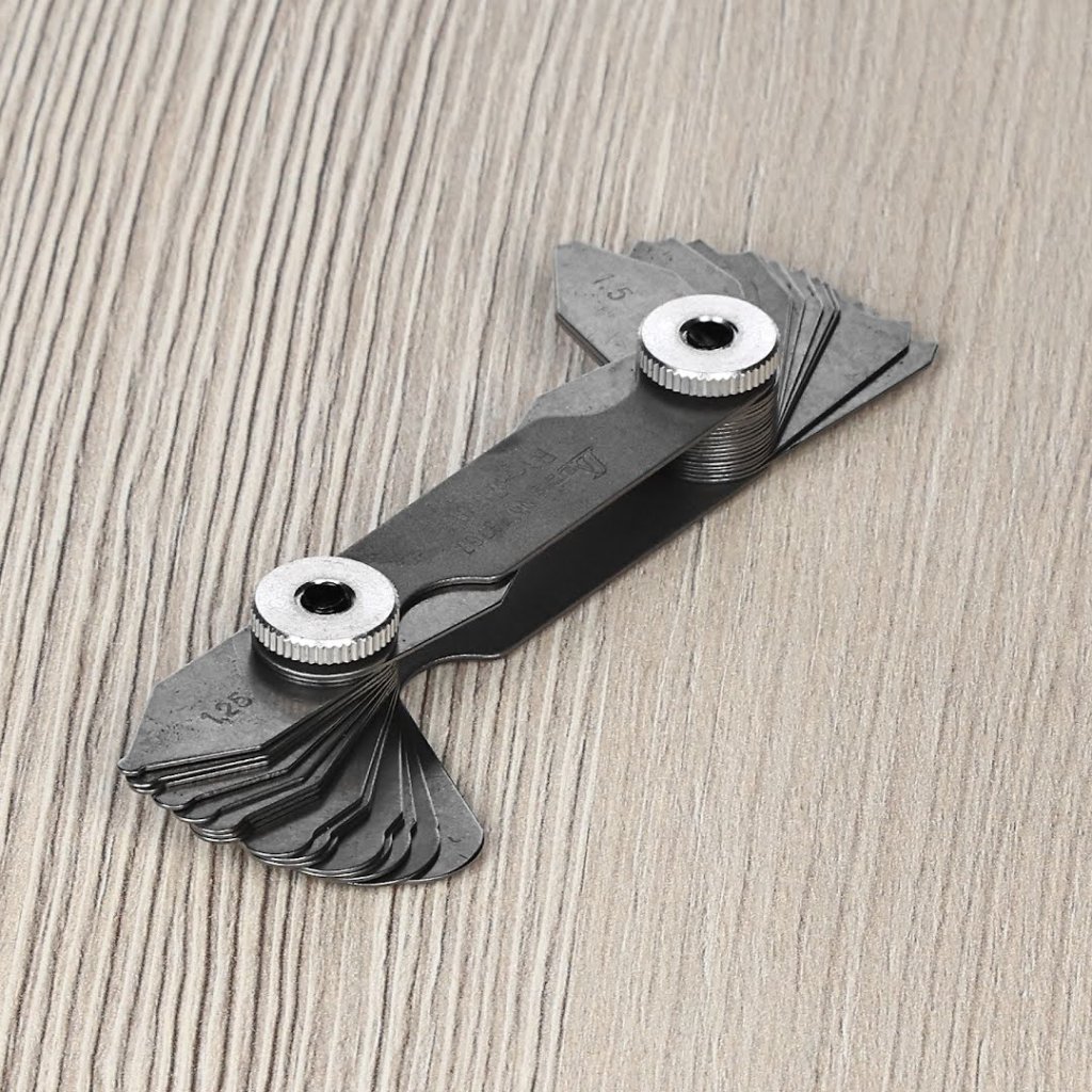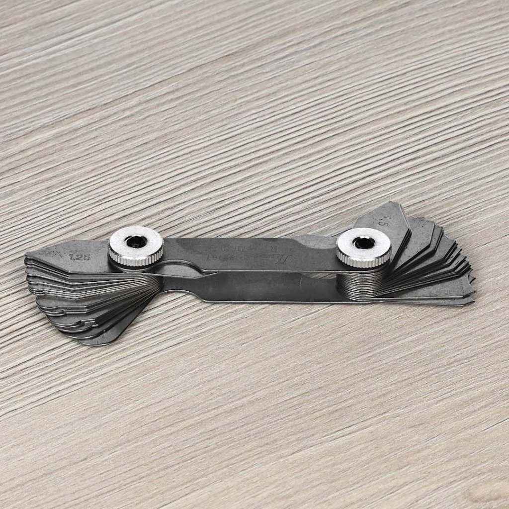 Měřič rádiusů SHINWA je nezbytný nástroj pro přesné měření různých rádiusů, rohů a hran. Tento měřič obsahuje 34 listů s rozsahem od 1,0 do 7,0 mm, umožňující měření jak konkávních, tak konvexních tvarů. Listy jsou snadno odnímatelné po odstranění zajišťovacího šroubu a lze je úhledně uložit do kompaktního pouzdra. Tento nástroj zajišťuje přesnost každého měření s přesností ±0,05 mm. Tloušťka listu 0,5 mm.
