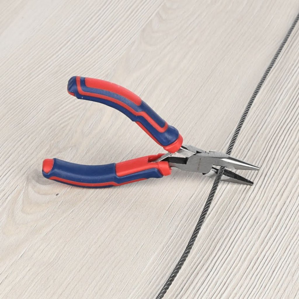 Kompaktní kleště od značky E-VALUE pro domácí práce s měkkou rukojetí, lehkou konstrukcí a schopností stříhat měkký železný drát do 0,8 mm.