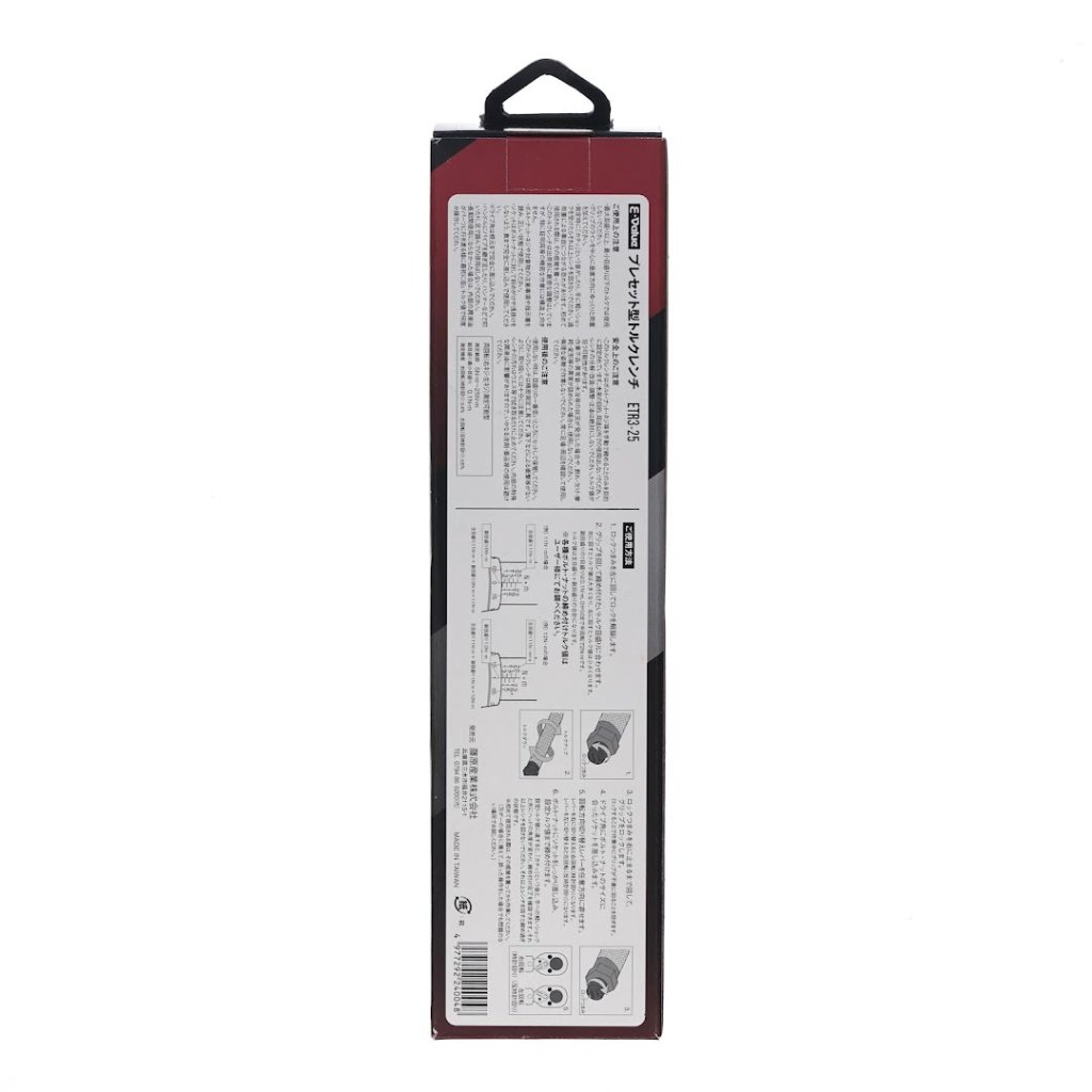 Momentový klíč s ráčnou E-VALUE, model ETR3-25, je navržen pro přesné utahování šroubů a matic na specifickou hodnotu momentu mezi 5 a 25 Nm. Při dosažení přednastaveného momentu vydává kliknutím zvuk a jemný impuls do ruky, což zajišťuje maximální přesnost při práci. Nástroj má barevně kódovanou stupnici pro snadné čtení a podporuje dvojitou rotaci pro závity pravotočivé a levotočivé. Dodává se s dedikovaným pevným pouzdrem pro ochranu a snadný transport. Klíč má velikost čtyřhranu 9,5 mm (3/8 palce).