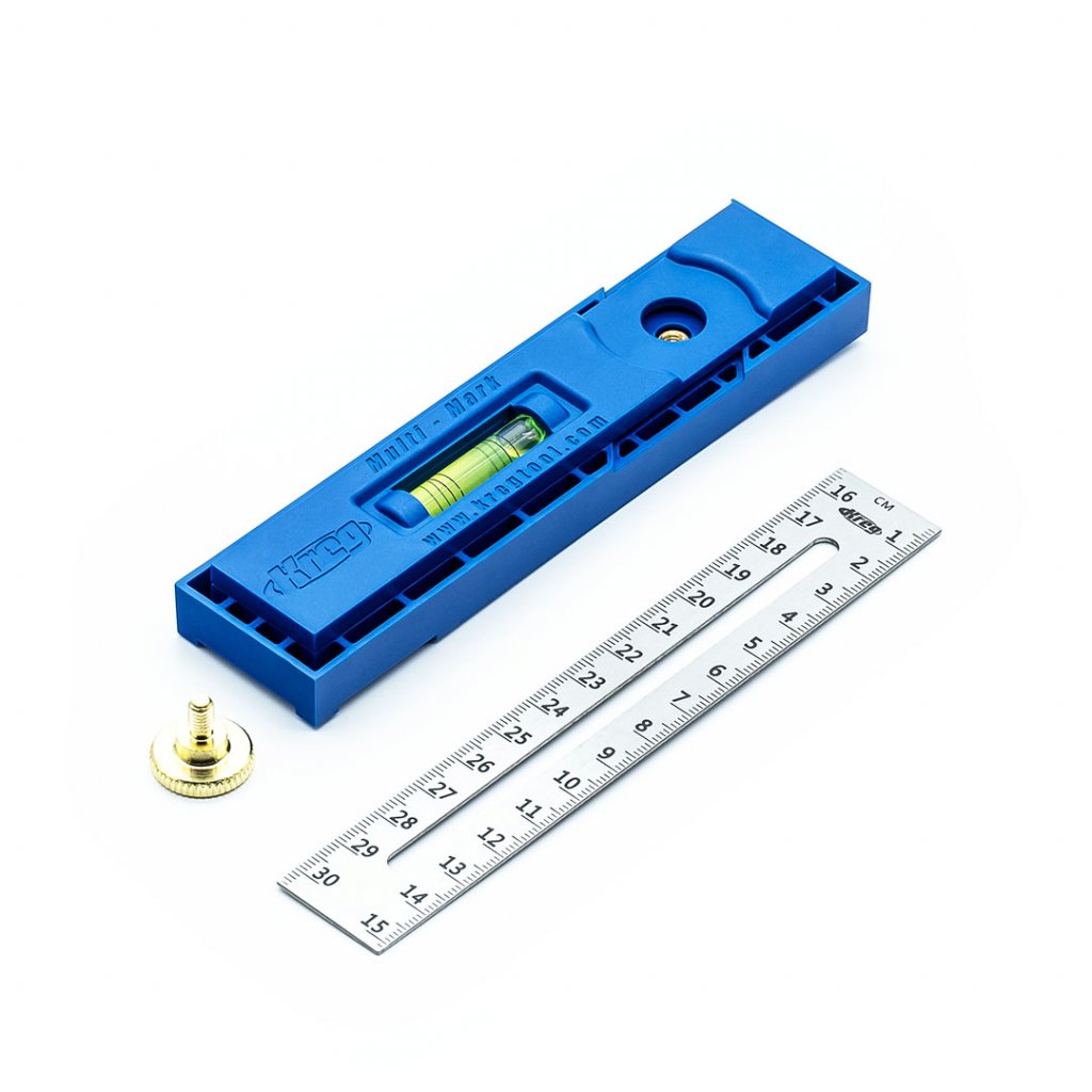 Multifunkční měrka od firmy KREG® s vodováhou, pravítkem a aretačním šroubem pro různé úhly. Praktický víceúčelový nástroj pro značení a měření, ideální pro širokou škálu použití. Ať už potřebujete přenést míry, vytyčit zkosené rohy nebo zarovnat a narovnat různé části vašeho projektu, MULTI MARK™ je jediný nástroj, který budete ke své práci potřebovat.