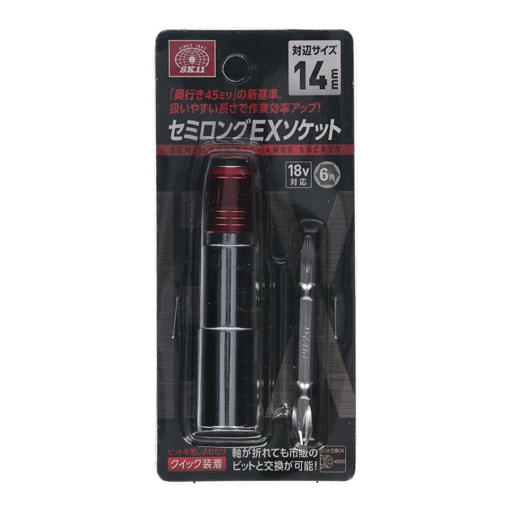Nástrčný klíč s bitem SK11 je navržen pro efektivní utahování a povolování šroubů a matic. Tato 14 mm šestihranná hlavice má střední délku. I když se bit zlomí, můžete jej snadno vyměnit za komerční bit, což z ní činí nákladově efektivní řešení. Hlavice je kompatibilní s nástroji s napětím 18V a má novou standardní hloubku 45 mm pro vylepšenou použitelnost.