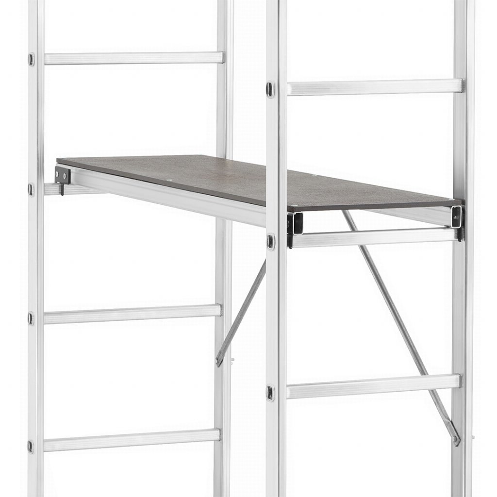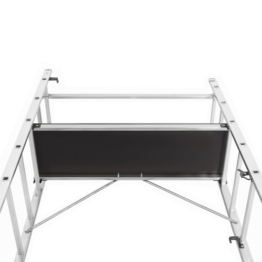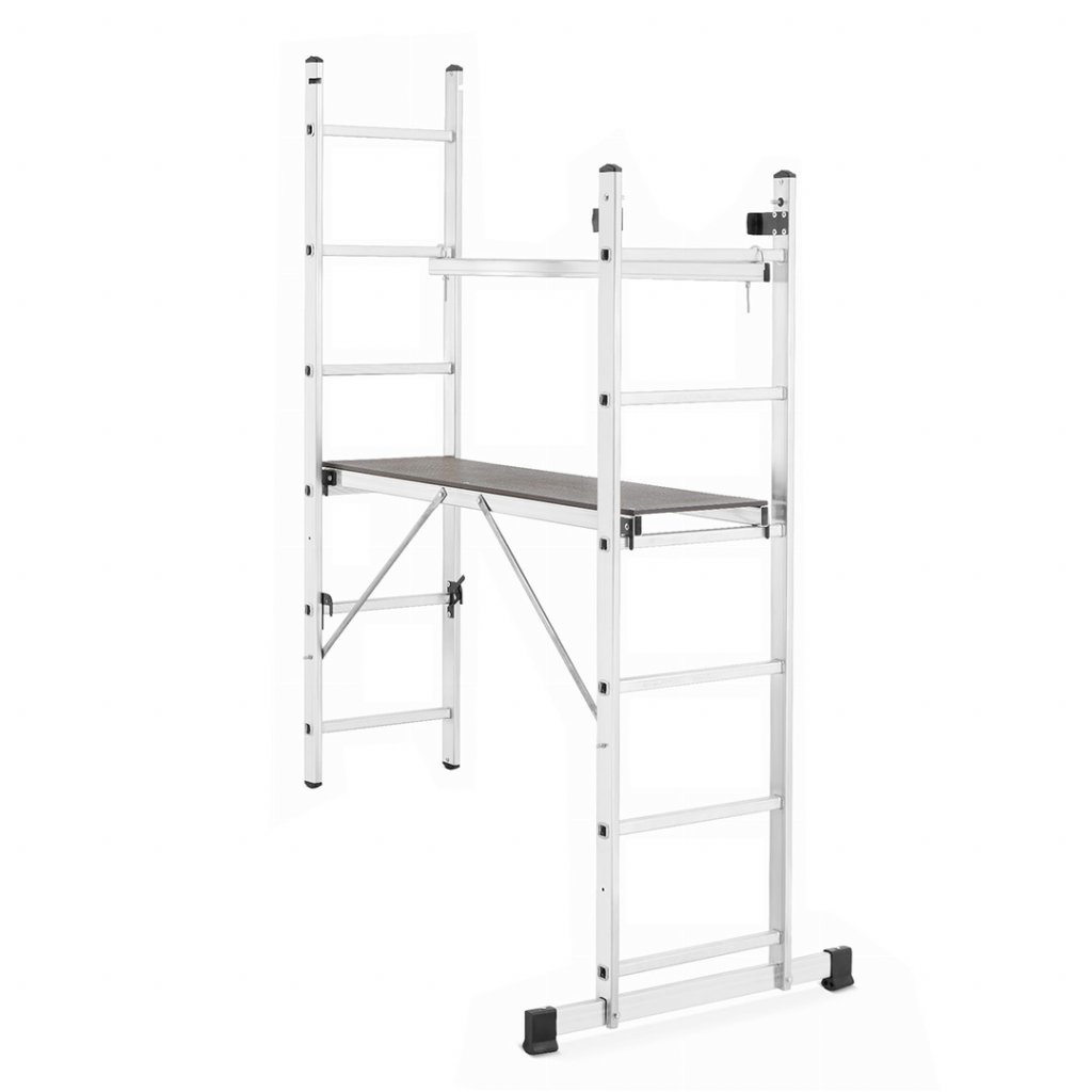 Univerzální skládací hliníkové lešení, které lze rozložit do podoby žebříku, pracovní plošiny či štaflí. Třídílná robustní konstrukce s diagonáními příčkami. Lze složit do úzké desky. Konstrukce má nízkou hmotnost, vysokou odolnost, pevnost a díky stabilizačním příčkám i dobrou stabilitu. K jeho stavbě nebudete potřebovat žádné nářadí a manipulovat s ním pohodlně zvládne jedna osoba.