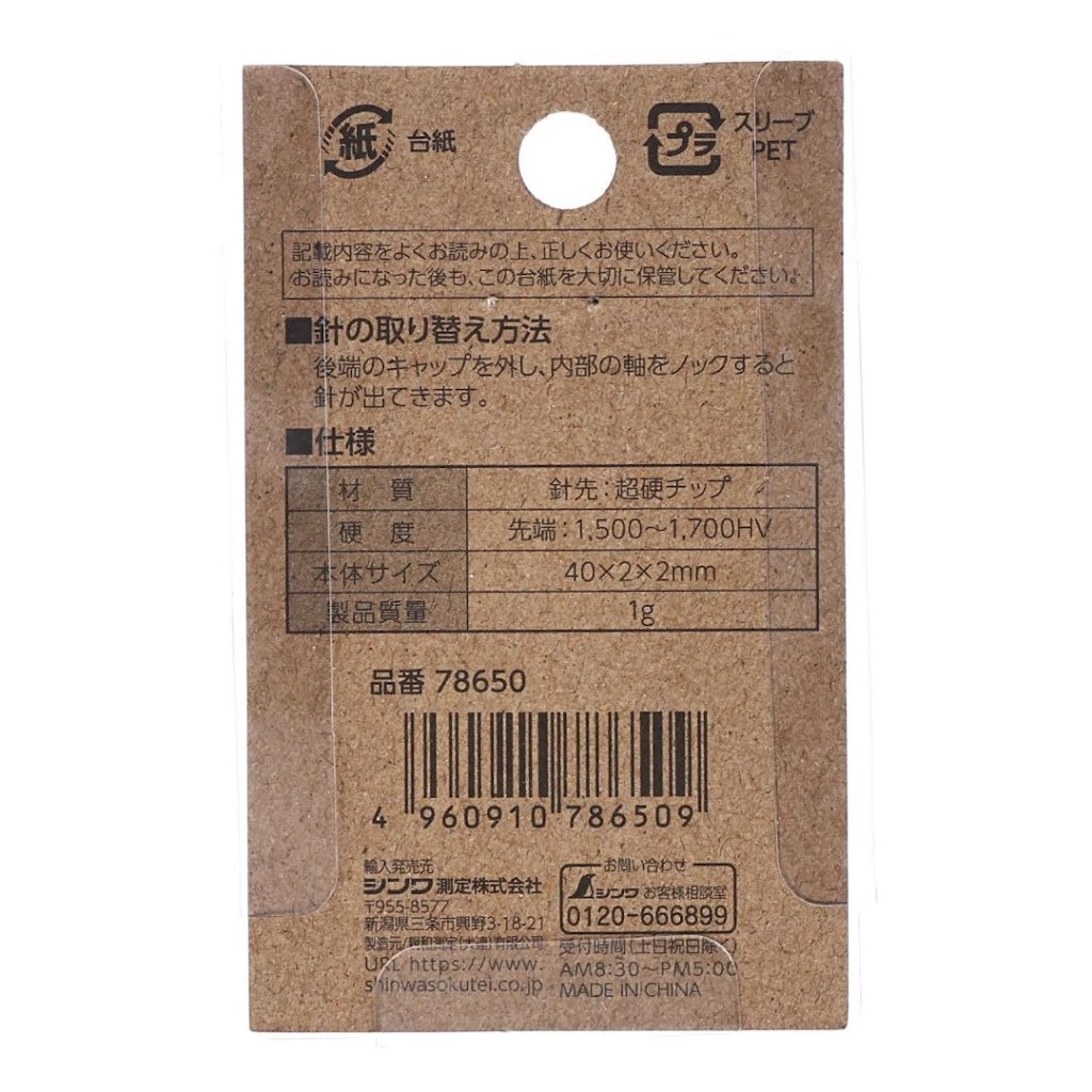 Náhradní rýsovací jehly SHINWA jsou nezbytným doplňkem pro vaše rýsovací potřeby. Toto balení je speciálně navrženo pro SHINWA rýsovací jehlu typ C a obsahuje dva vysoce kvalitní náhradní hroty. Každá jehla má 38 mm délku a super tvrdý karbidový hrot pro přesné značení. S rozměry 2 mm v průměru a váhou 1 g tyto jehly zajišťují odolnost a spolehlivost pro přesné rýsovací úkoly.