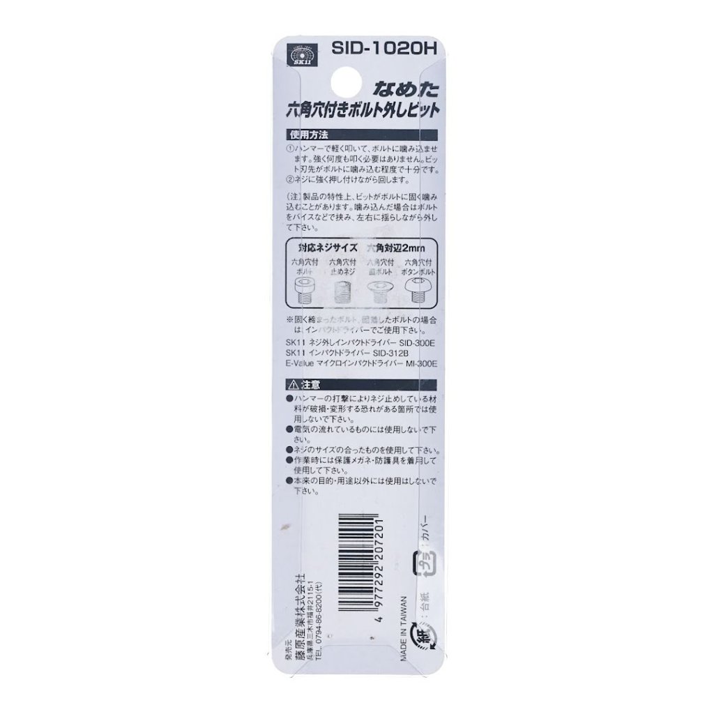 Nástavec SK11, model SID-1020, je navržen pro efektivní odstraňování šestihranných šroubů, které nelze otočit standardním šestihranným klíčem. Jeho unikátní tvar čepele účinně uchopí a otočí stržené nebo zaoblené šestihranné šrouby. Tento bit je vhodný pro šrouby o velikosti 2 mm a má kompaktní rozměry, které umožňují práci ve stísněných prostorech.