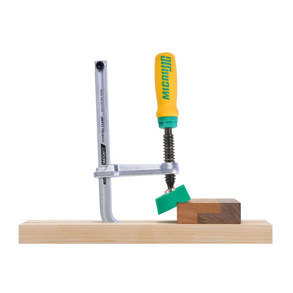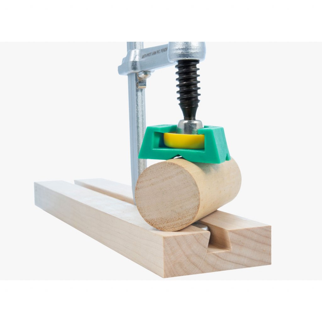 Díky těmto plastovým nástavcům na truhlářské svorky MICROJIG dokážete upnout materiál za hranu v úhlu nebo díky drážkám upnout dřevěnou kulatinu.