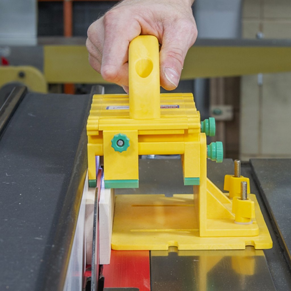 S doplňkem Upgrade kit uděláte ze základní posuvky mnohem stabilnější přípravek pro práci na formátovací pile nebo stolní fréze. Cílem těchto přípravků a jejich nadstavbových doplňků je zajistit bezpečnou manipulaci při práci s truhlářskými nástroji a ochránit tak prsty na rukou v těsné blízkosti frézy či pilového kotouče.