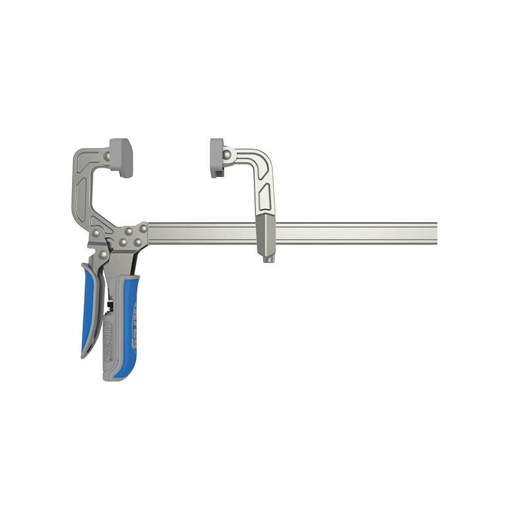 Truhlářská svorka KREG® pro sevření poměrně velkých kusů materiálu v dílně. Snadné ovládání tlaku od velmi jemného až po velmi pevné upnutí.